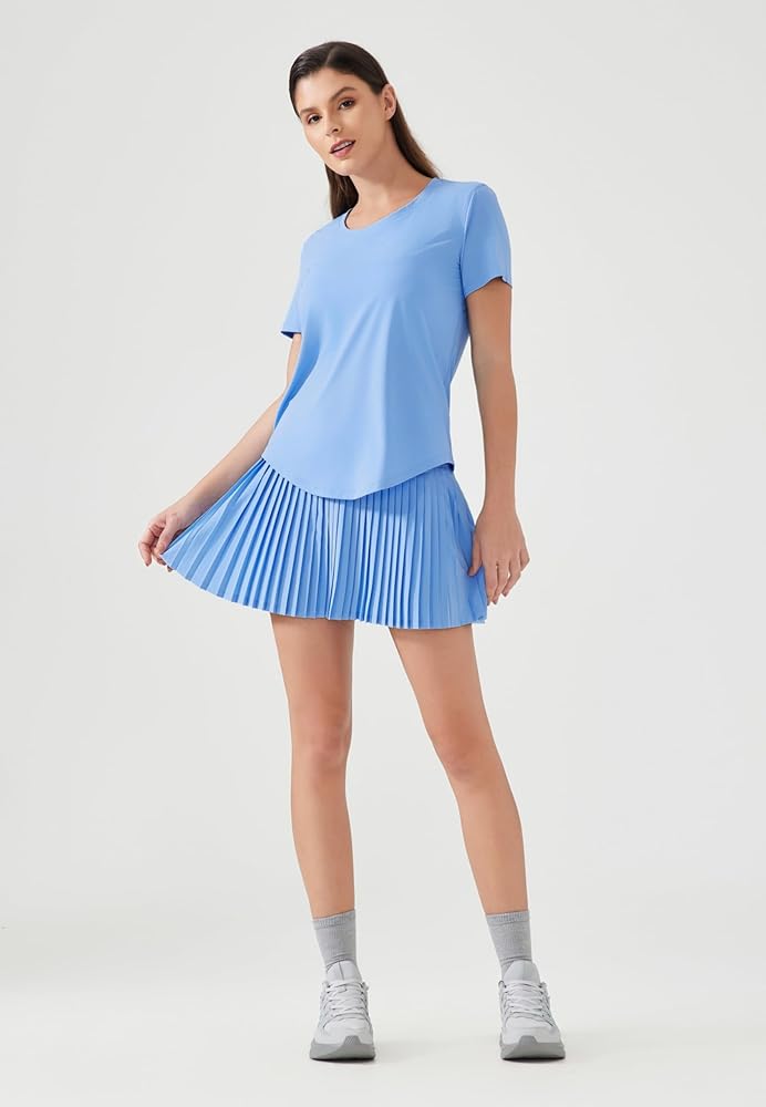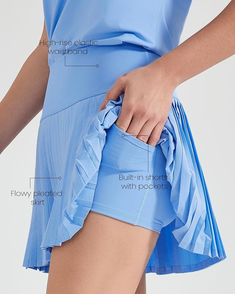 Functional & Synglish: تصميم تنورة مطوي على خط يجمع بين الأناقة الرياضية والتطبيق العملي ، بينما توفر الجيوب الجانبية تخزينًا مناسبًا للضروريات الصغيرة مثل الكرات أو المفاتيح.