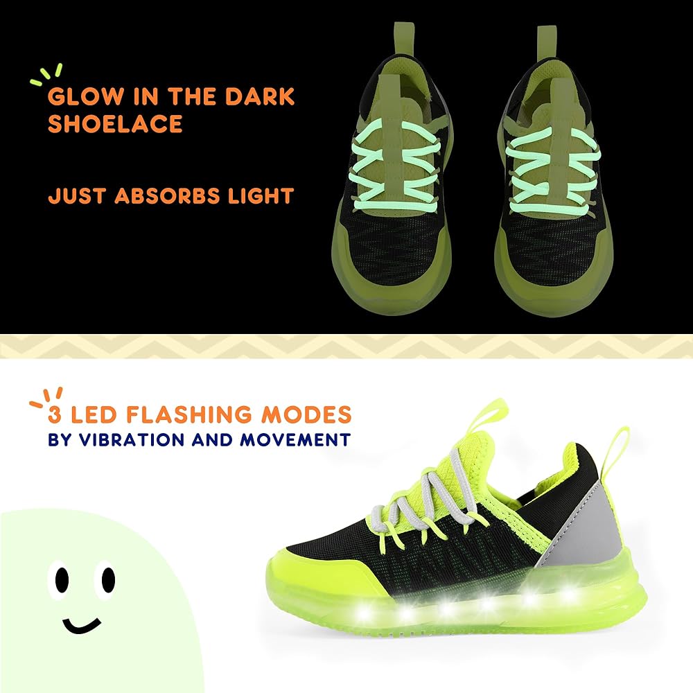 أربطة الفلورسنت: أربطة أربطة الفلورسنت على أحذية تنس الأطفال تجلب عنصرًا عصريًا. تبدأ الحذاء في التوهج بعد 10-20 دقيقة فقط من التعرض للأشعة فوق البنفسجية ، جاهزة لقضاء ليلة من المرح! إذا بدأت تلاحظ الأربطة التي تبدأ في إعادة شحنها ببساطة في ضوء الأشعة فوق البنفسجية.