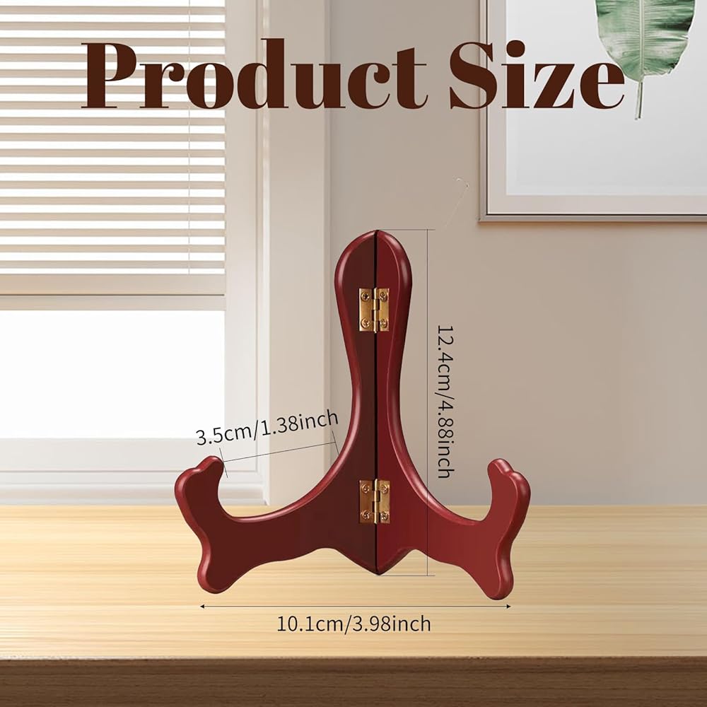 Brass metal hinges allows you to accommodate many sized items. The picture easel stand is adjustable, and the width can be adjusted by adjusting the folding hinges. Folds for easy storage. And it can fold flat for easy keeping when it is not in use. It is table top easel, so it is easy to place on the table or desk.