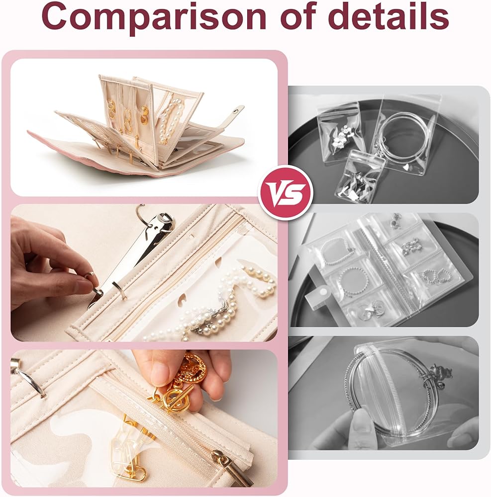 علبة المجوهرات الشفافة والسحاب : طبقات سحاب شفافة لسهولة الوصول والتخزين الآمن والمقاوم للماء لحماية المجوهرات من الغبار والأضرار.
