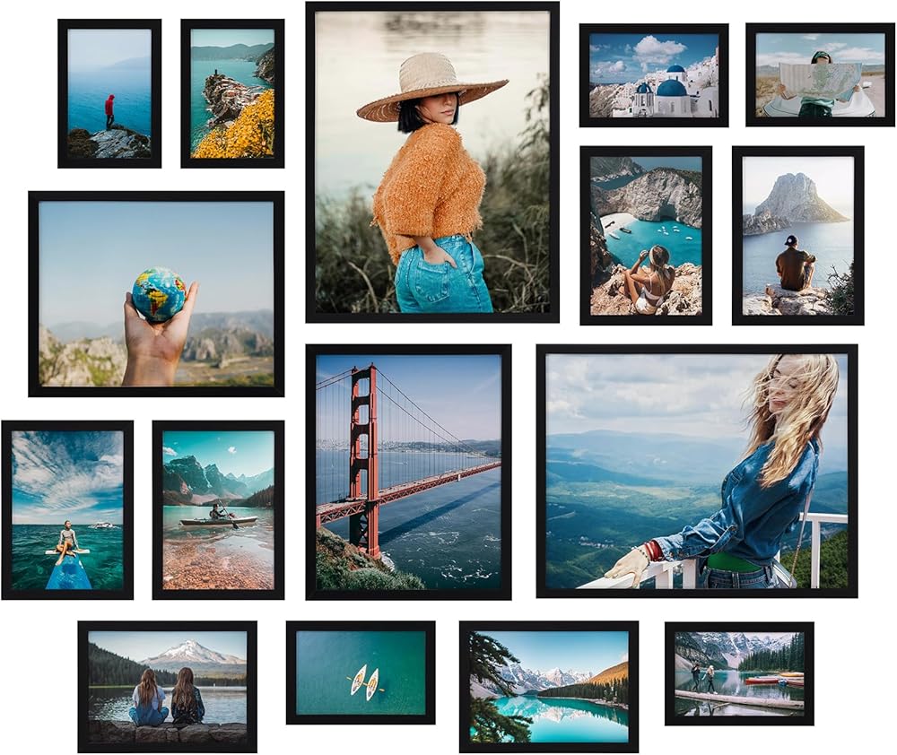 GiftGarden 16 Pack Black Picture Frames for Multi Sister Photos ، مجموعة متنوعة بما في ذلك اثنين من 11x14 ، واثنتان 8x10 ، ستة 5x7 ، ستة 4x6 ، إطار معرض لجدار أو عرض الطاولة
