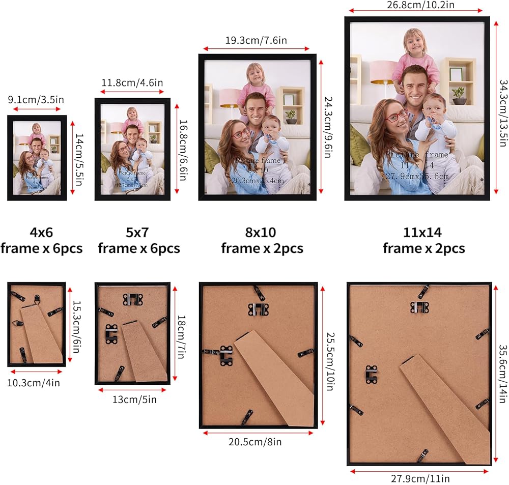 مجموعات إطارات الصور القوية: مصنوعة من صب البلاستيك القوي ، مع الانتهاء من الأسود الكلاسيكي ، هذه الصور إطارات صور جدار الكولاج تكمل أي أسلوب ديكور المنزل من الحديث إلى التقليدي. تضمن أغطية زجاجي مقاومة للتحطم واضحة أن يتم عرض صورك بوضوح ومحمي من الغبار والأضرار.
