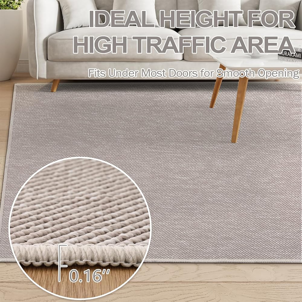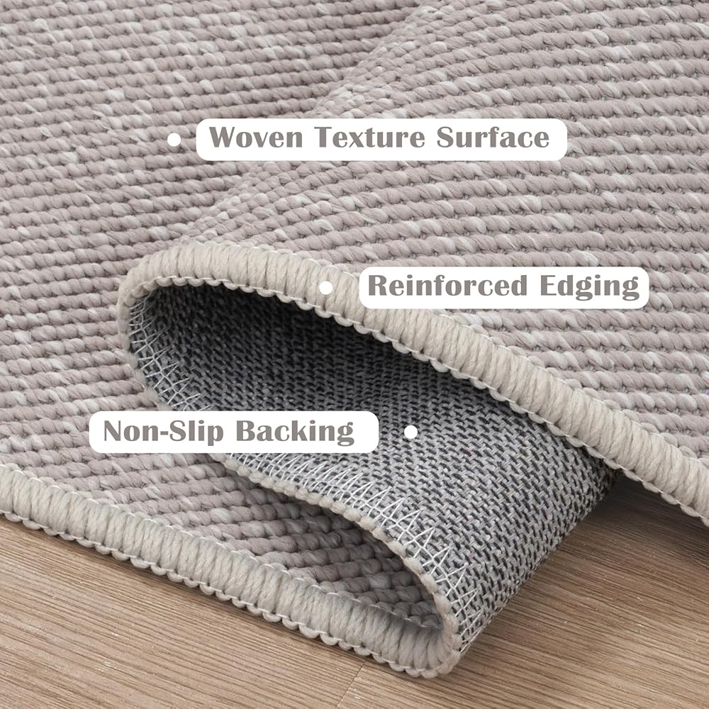 سجادة منطقة Seavish Boho مقاس 3x5 سجادة منطقة منسوجة من القطن باللون الرمادي الداكن لغرفة النوم، سجادة مدخل قابلة للغسل، سجادة صغيرة لغرفة المعيشة، سجاد المطبخ الحديث للمزرعة، سجاد غير قابل للانزلاق لمكتب النوم