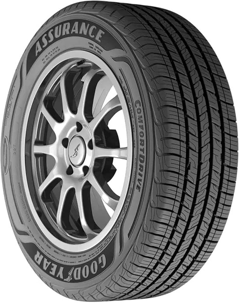 Goodyear's Assurance ComfortDrive is an all season tire that's built to give drivers of coupes, sedans, CUVs, SUVs, and minivans a comfortable ride. Backed by a 60,000 mile limited manufacturer tread life warranty, the Assurance ComfortDrive's Evolving Traction Grooves and TredLock Technology work with a soybean oil compound for consistent traction, better responsiveness, and long lasting control. The Assurance ComfortDrive also features optimized AquaChannel grooves that remove water to reduce the risk of hydroplaning, and built in wear indicators that allow drivers to visually check their tire's tread depth.