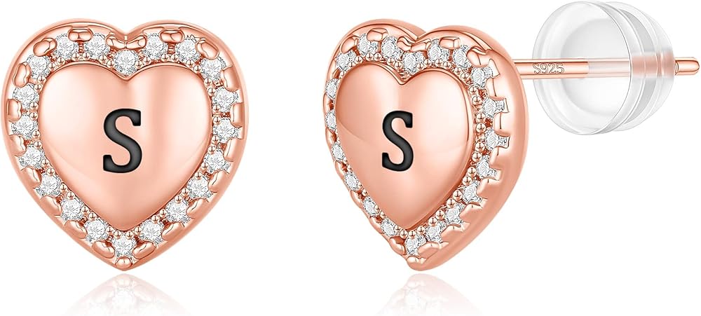 • ● [Size]: Heart initial stud earrings set with AAA+ cubic zirconia stones. Alphabet stud earrings fit most girls' size.
