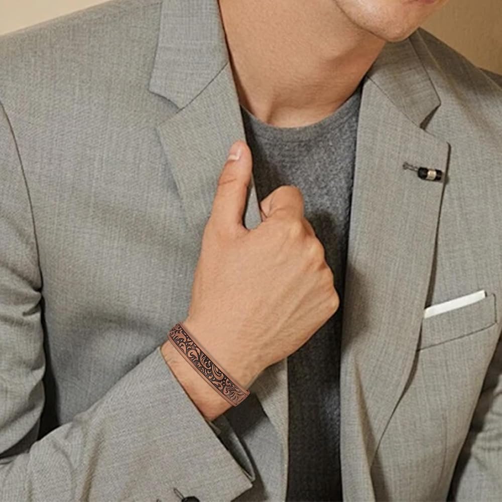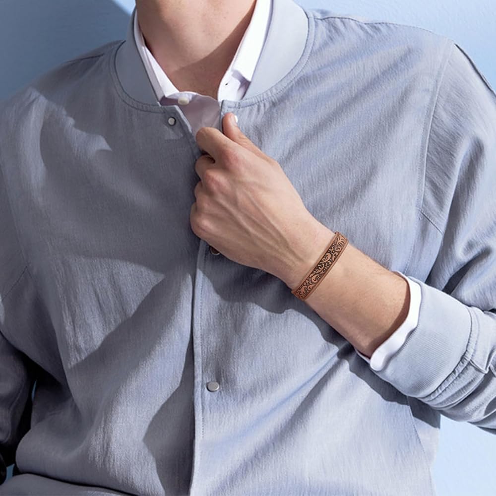[Size Adjustable] The open-end design of the men's copper magnetic bracelet allows for easy size adjustment to fit any wrist. Simply squeeze or pull gently to achieve the perfect fit. Dimensions: Length - 7.28inch/18.5cm, Width - 0.59inch/1.5cm.