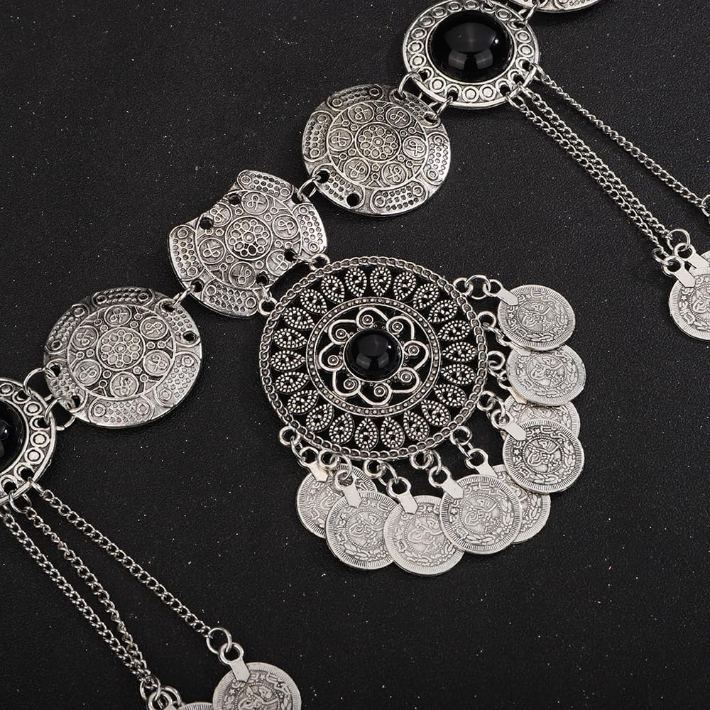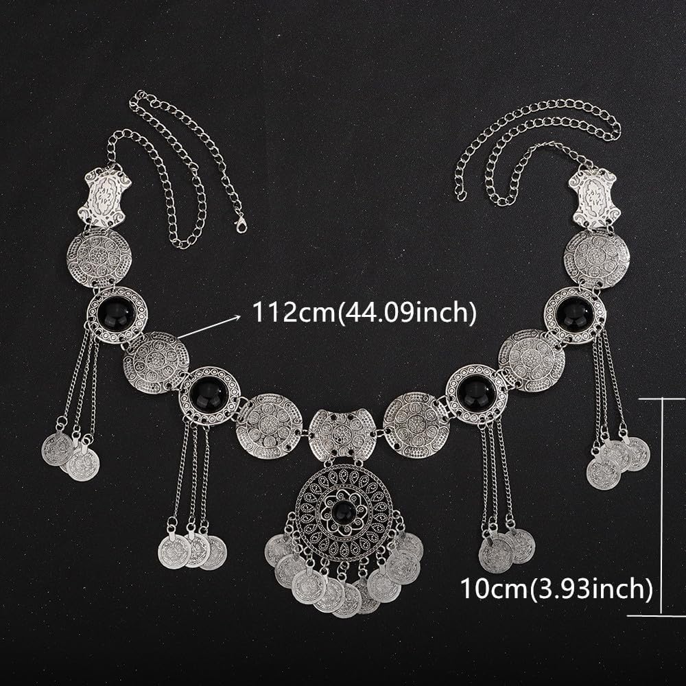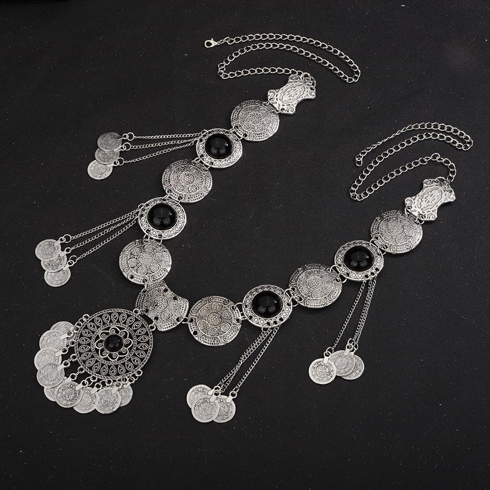 Jumwrit الفضة الطبقات المعدنية سلسلة الخصر المعدنية طويلة زهرة عملة شرابة الشرابة سلسلة بطن اللامع راينستون خمر سلسلة الجوف