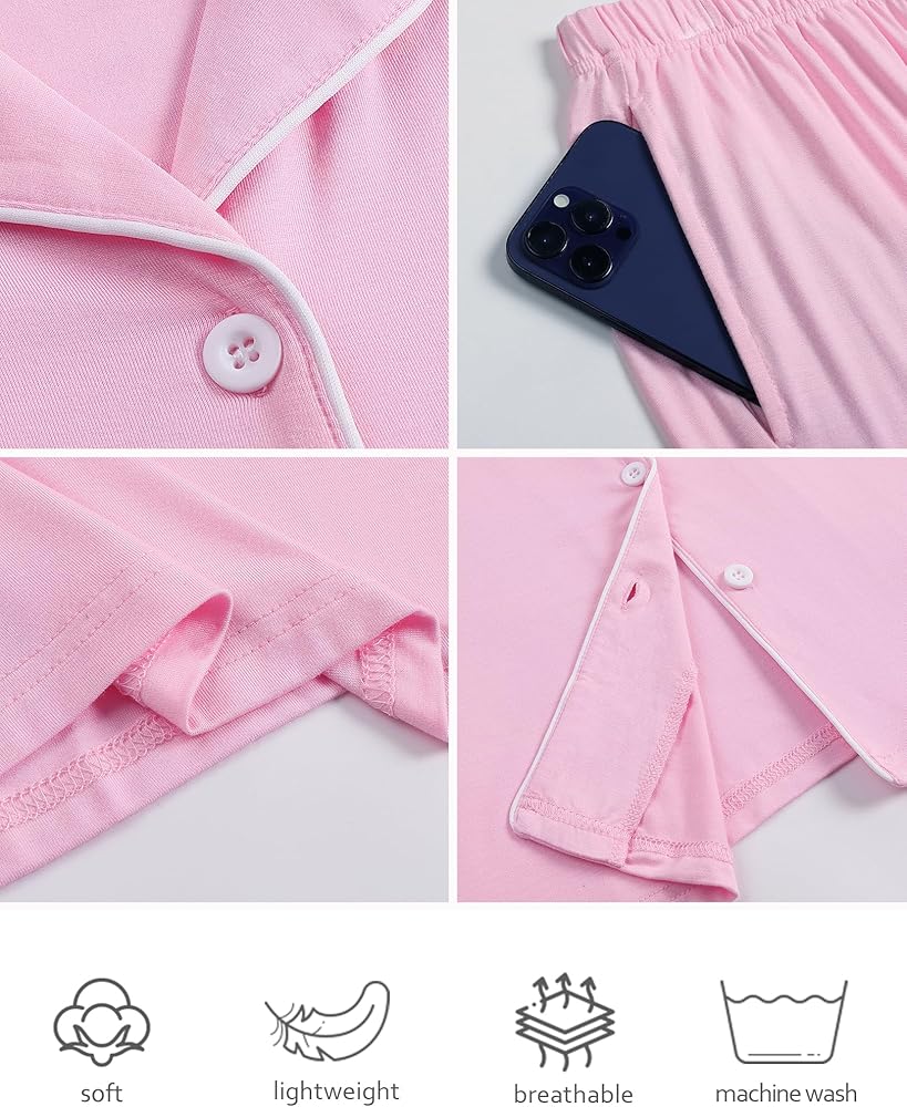 البيجامات الوظيفية للنساء: مجموعة PJ مطابقة لطيفة هي جميلة لحفلات الزفاف وشهر العسل وحفلات النوم ، والفتيات وسادة الحديث والسفر. وظيفية كملابس الأمومة وملابس الليل بعد الولادة ، يجعل الزر الأمامي لأسفل من السهل التغذية والإيقاف. أيضا فكرة هدية مثالية للزوجة وصديقة وأمي في عيد الميلاد والذكرى السنوية وعيد الميلاد