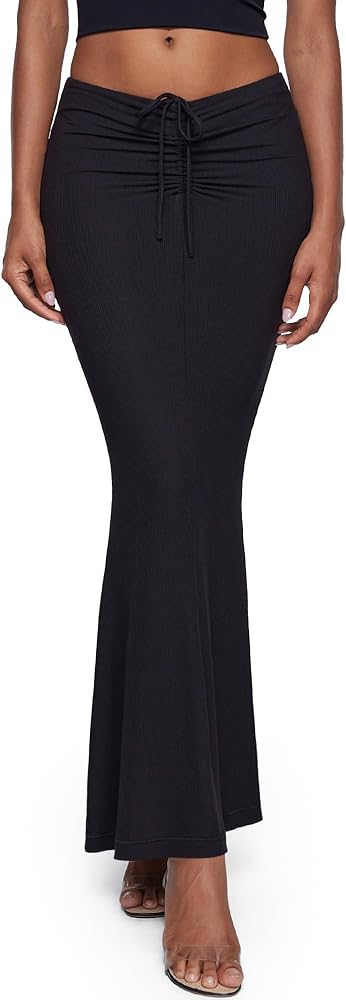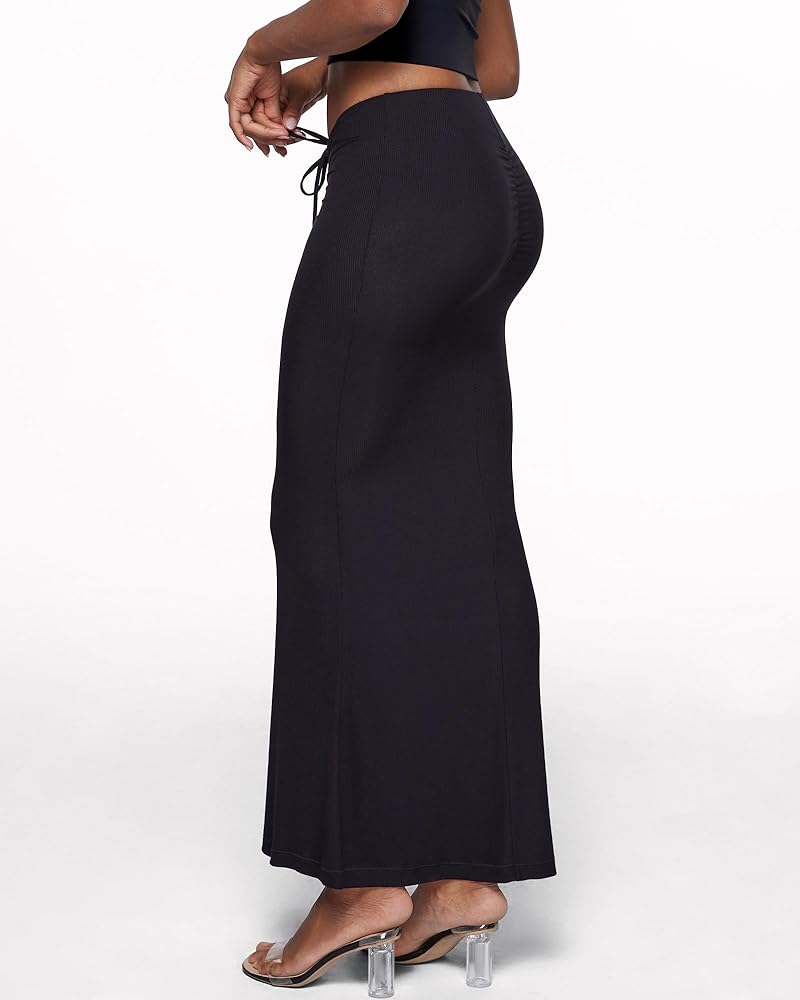 You'll fall in love with this super soft, stretchy, fitted maxi skirt in our soft lounge fabric. Features front ruched details and adjustable drawstrings so you can create the coverage you desire.
