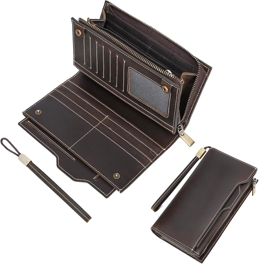 السعة: ميزات 5 فتحات الاستلام / حامل جواز السفر ، فتحة 25 بطاقة ، نافذة معرف ، 2 مقصورة نقدية / جيب الهاتف ، جيب واحد من سوستة العملات ، واحد حزام معصم قابل للإزالة.