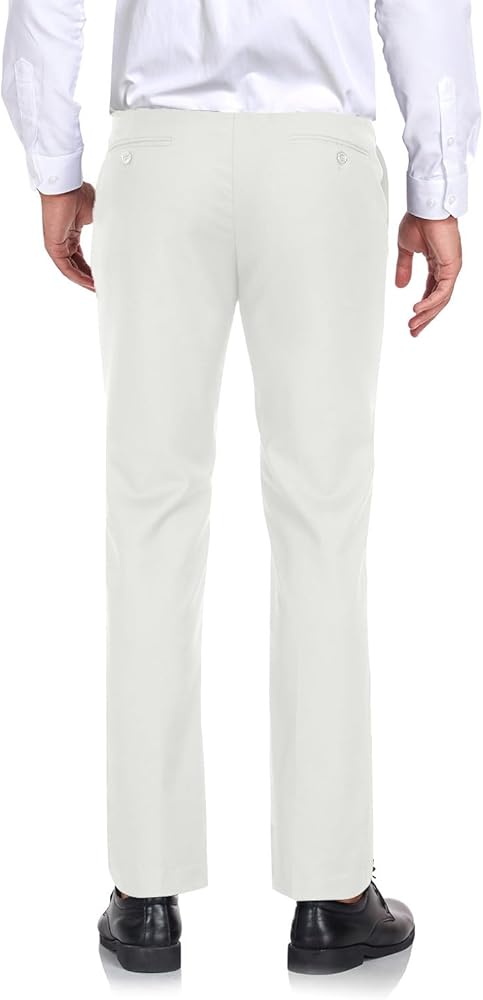 • Feature of Dress Pants: Classic fit flat front pant with a hook and button closure, zippered fly, two side pockets and back pocket. A hidden expandable waistband.