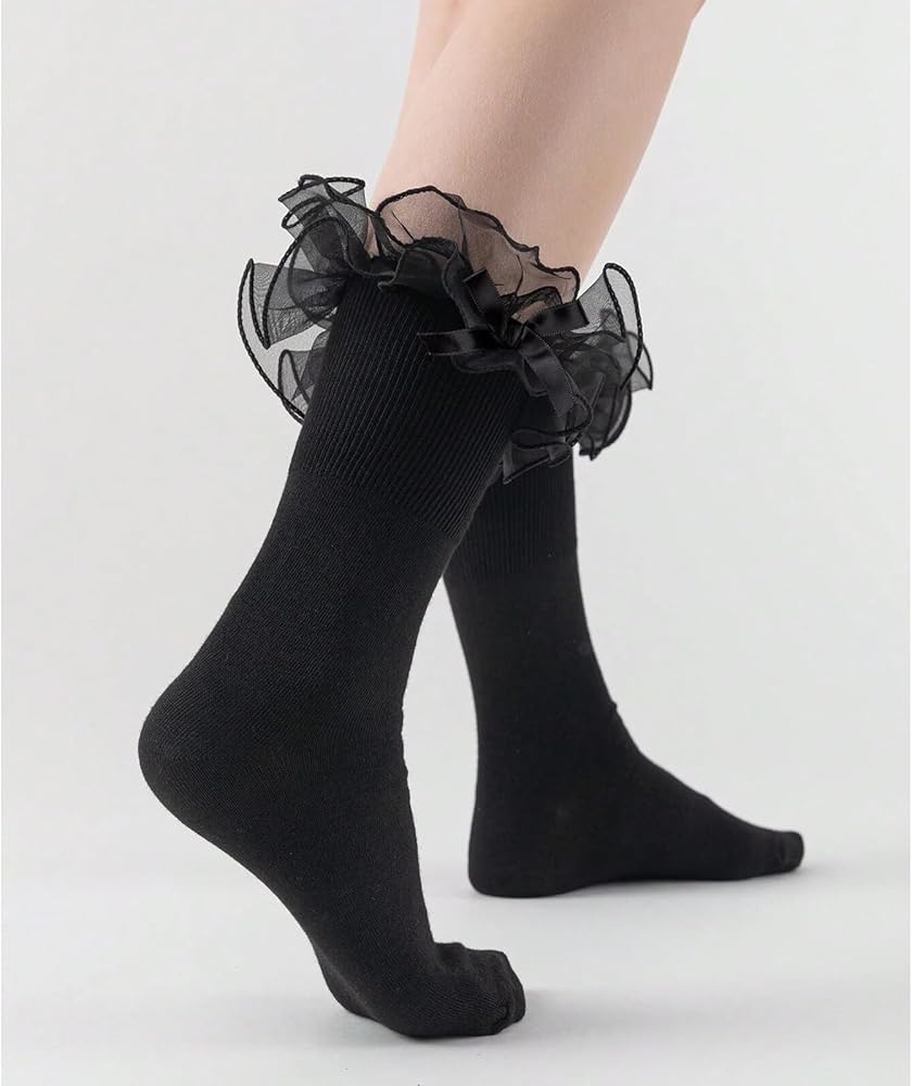 【Shoe Size US 5-10】 These bow socks with ruffles for women are one size,which fits women US shoe sizes 5-10 and most US women and big girls. Good elasticity of white ruffle socks brings you enjoyable wearing experiences for the whole day