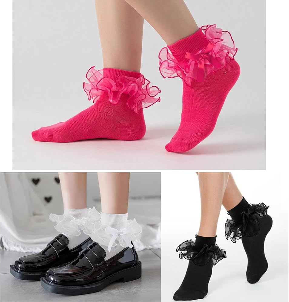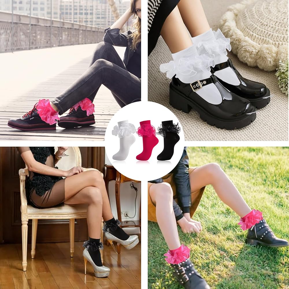 【Package Content】 3 pairs of adult ruffle socks for women packed in one package,white,black,hot pink and navy blue are available,classic and trendy color makes you can match with different styles of outfits and shoes,such as mary jane shoes,Mary Hane shoes and booties,very suitable for the pageant,50's 80's parties,christmas,halloween daily. The black ruffle socks can be as a Mother's Day gift,Valentine's Day gift,Birthday gift