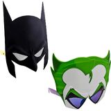 Save Gotham style with a pair of these Blue Batman Sun-Staches. Keep your identity a secret while looking great at the same time. Featuring his iconic bat mask in a bright pink finish and complete with yellow lenses, this pair of entertaining eyewear is fun for all occasions. Whether you're beating up bad guys or cruising in the Bat Mobile, these stylish shades were made for fun in the sun. These aren't just sunglasses, they're Sun-Staches!