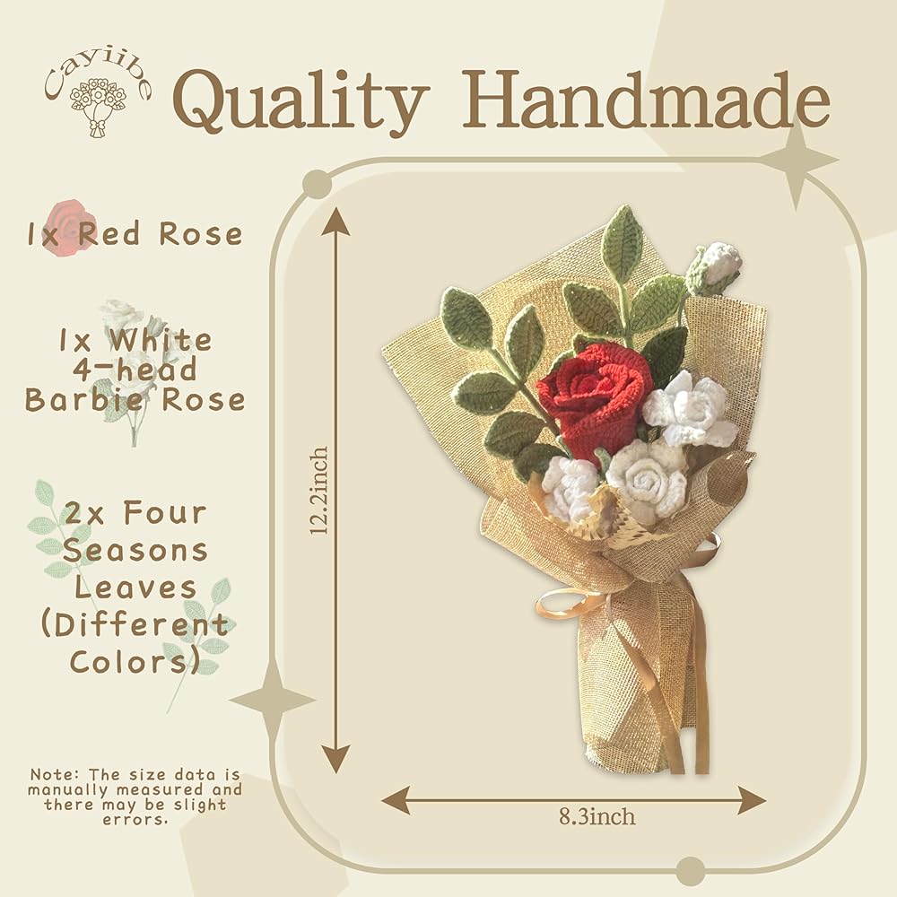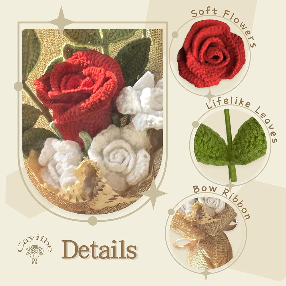 【الحرف اليدوية】 باقات الكروشيه Cayiibe تم تصميمها بعناية من قبل الحرفيين المحترفين وهي كروشيه بشكل رائع مع خيوط مختلفة ملونة ، وكل بتلة وورقة لها طبقات مميزة ، ملمس رقيق ، ومعنى ثلاثي الأبعاد قوي.
