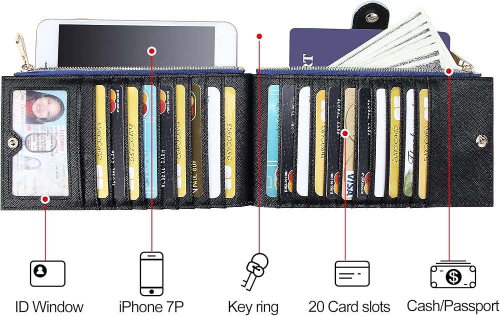 【سعة كبيرة ومتعددة الاستخدامات】 الحجم: 7.87 "L x 0.8" W × 3.98 "H ، الوزن: 0.6 رطل ، 20 فتحات بطاقة مع حظر RFID ، نافذة معرف واضحة مع ثقب الإبهام ، 2 سستة جيب. 6.5 ")