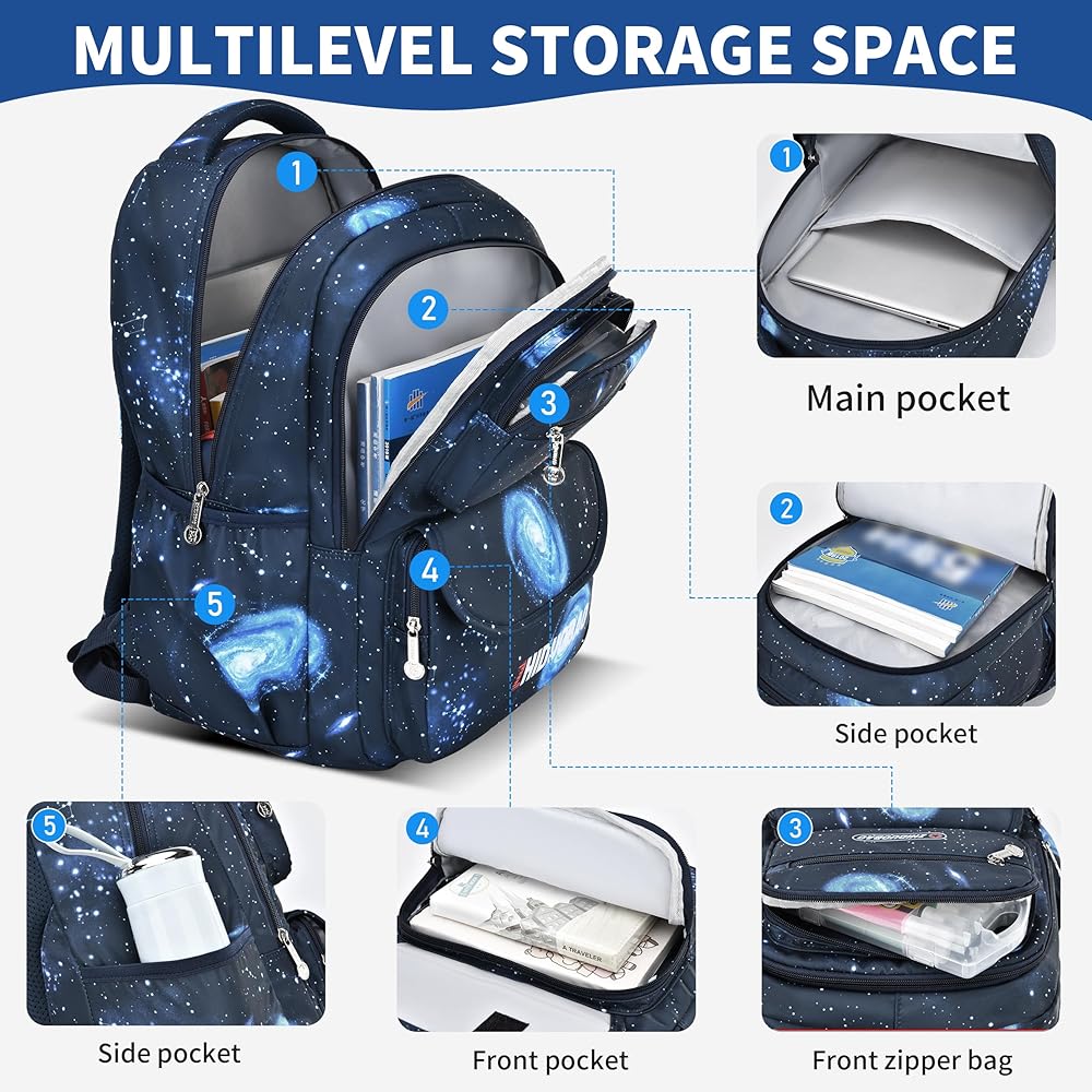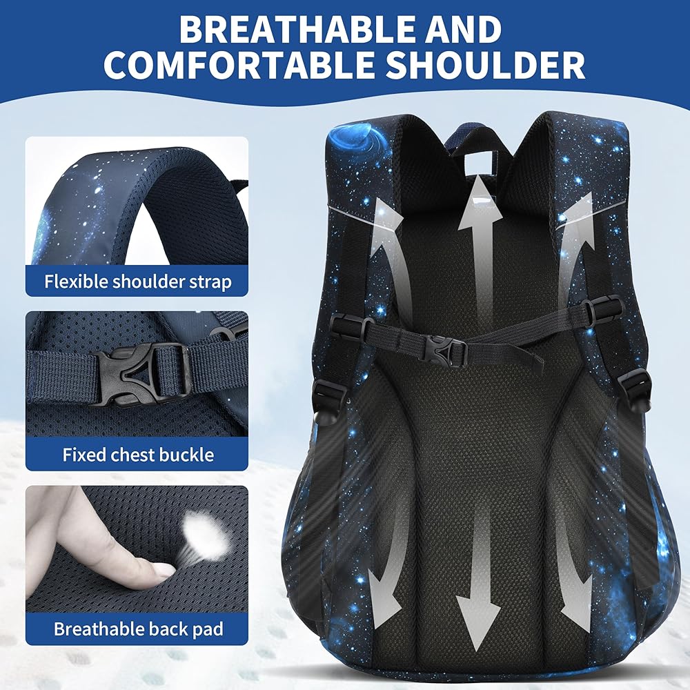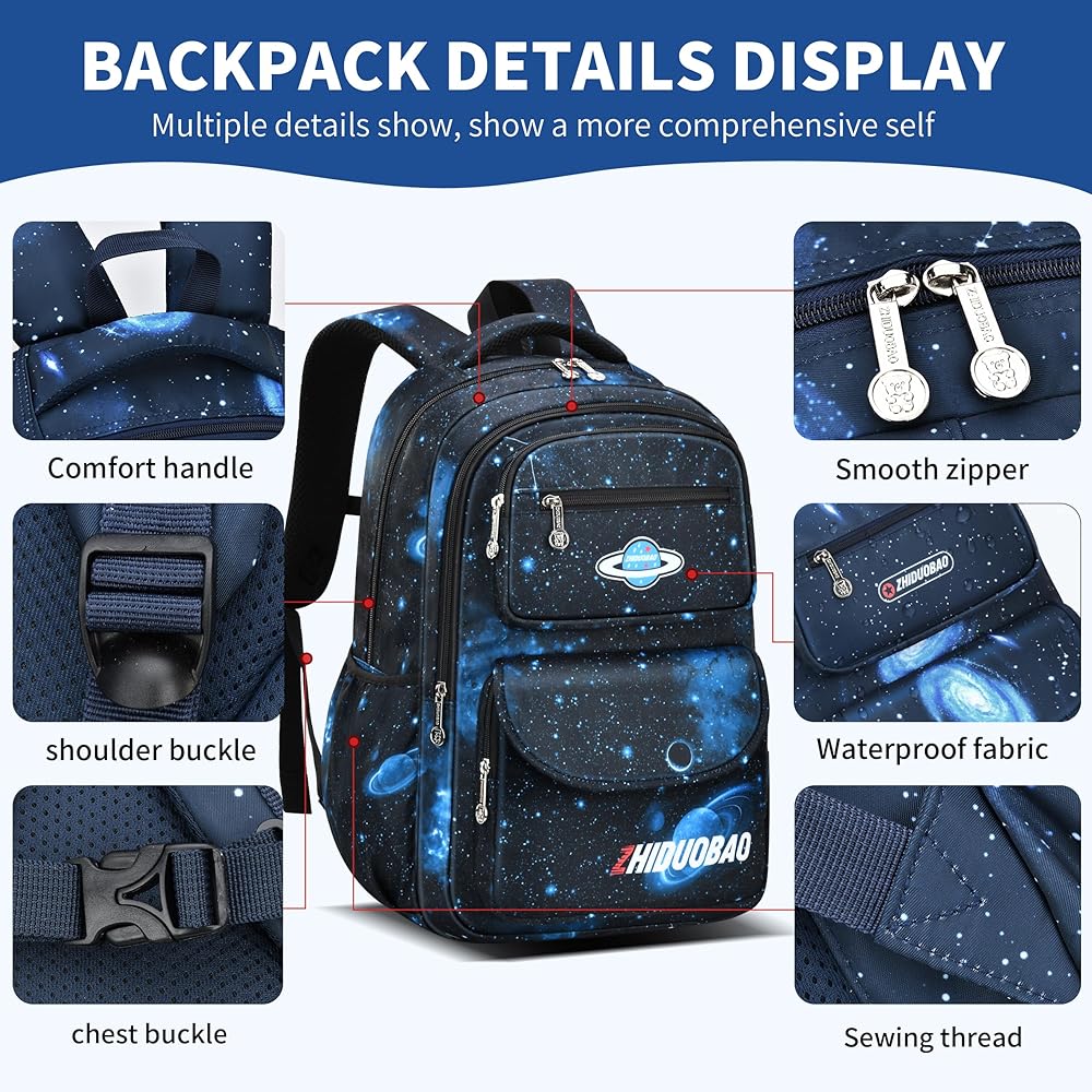 ◆ Eye - التصميم التصميم : تتميز حقيبة الظهر هذه بمساحة ساحرة - طباعة ذات طابع مع مجرات زرقاء حية ونجوم فوار ، والتي من المؤكد أنها ستجذب المستكشفين الشباب. إنها طريقة رائعة للأطفال للتعبير عن شخصيتهم.