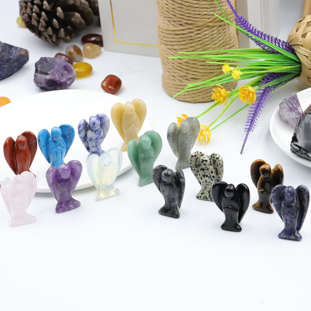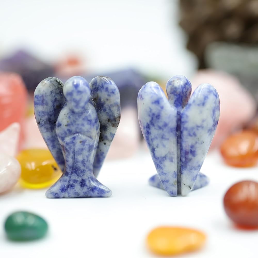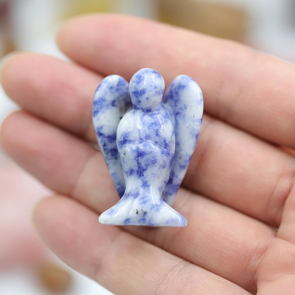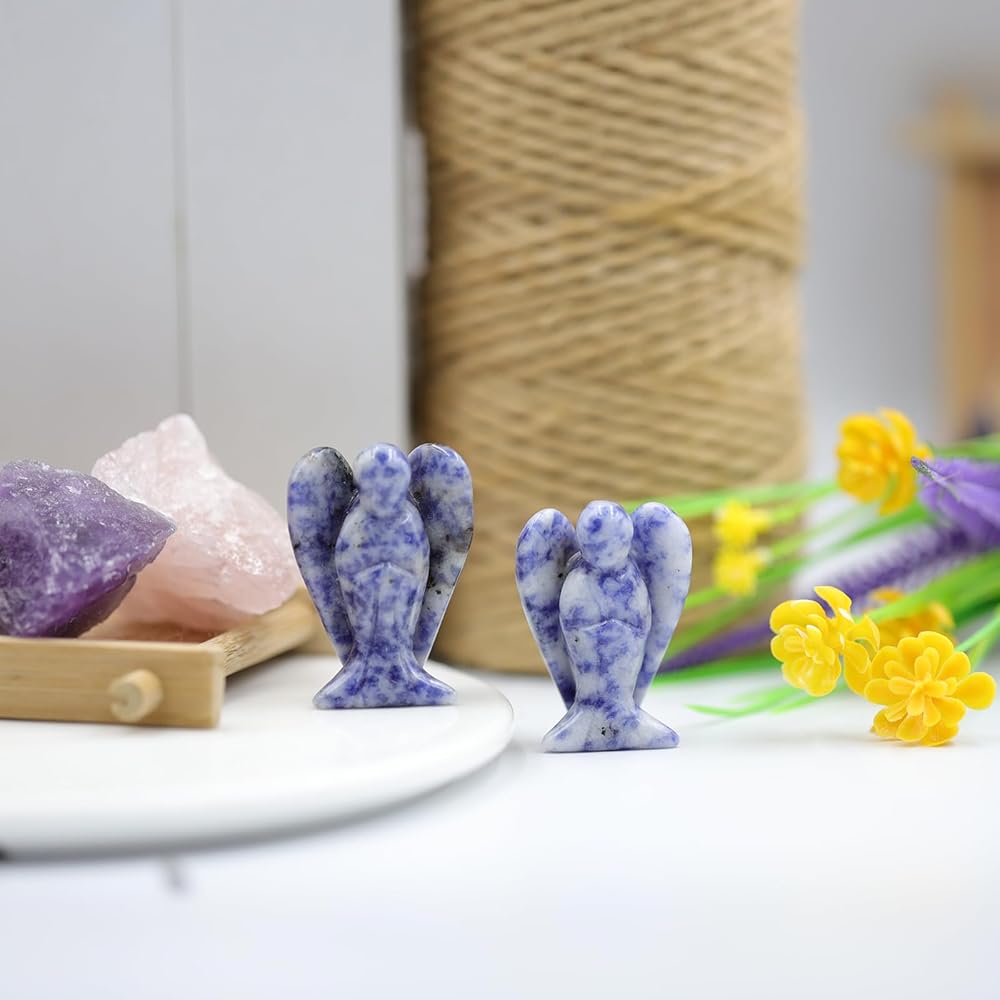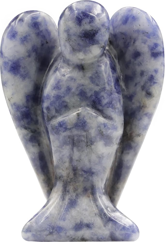 Handcrafted: White Labradorite angel figurine is meticulously hand-carved from polished Blue Sodalite for a unique, one-of-a-kind decor piece.