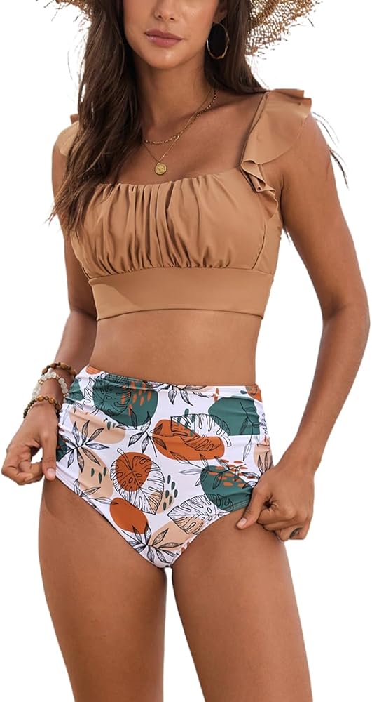 الميزة: أحزمة الكشكشة ، القاع المرتفع ، التصميم الاستوائي للطباعة ، مجموعة بيكيني من قطعتين ، والتي تقدم مظهرًا لعوبًا ستحبها.