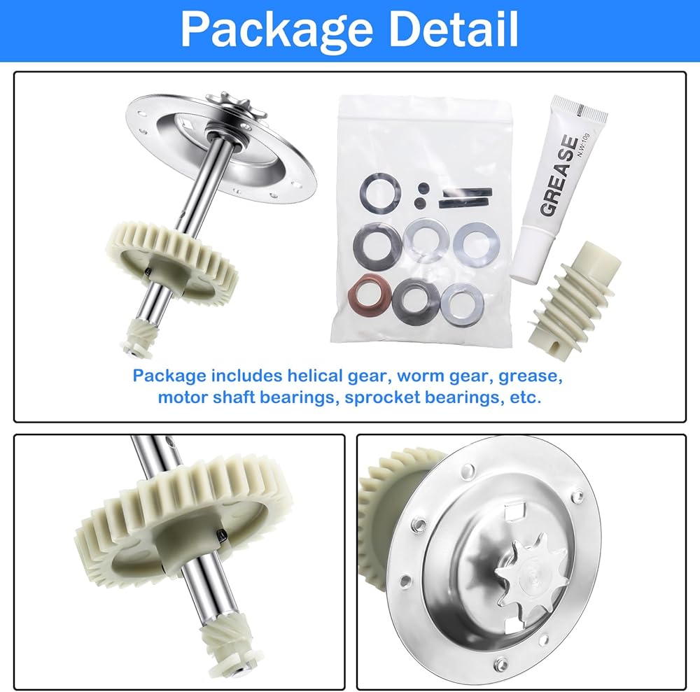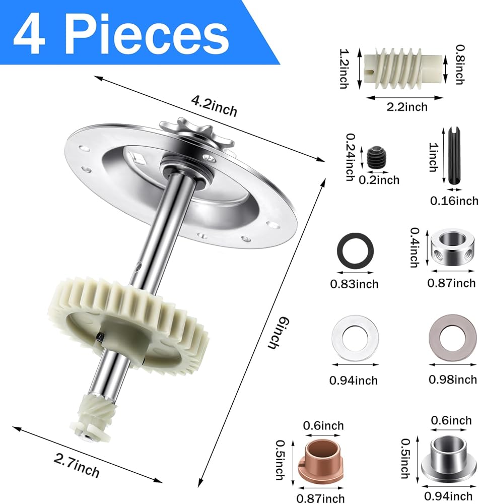 مجموعة من 4 قطع: سوف تحصل على 4 أجزاء لفتح باب المرآب، كل منها يحتوي على ملحقات بما في ذلك التروس والعجلات المسننة والعتاد الدودي والشحوم ومحامل عمود المحرك ومحامل العجلة المسننة والمزيد؛ عبوات الكميات المتعددة هي خيار قيمة لطيفة
