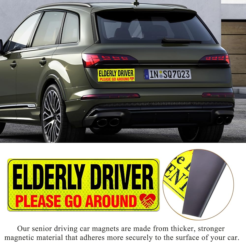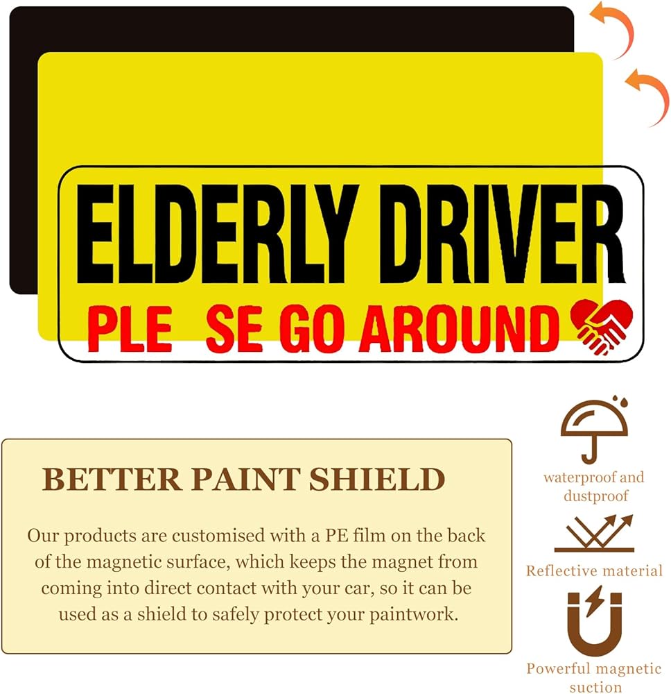 【Weather Resistance】: This senior driver magnet is able to withstand a variety of weather conditions and has excellent weather resistance to ensure its long-term use. Whether exposed to rain, wind or sunlight, it maintains its vibrant color and reflective ability.