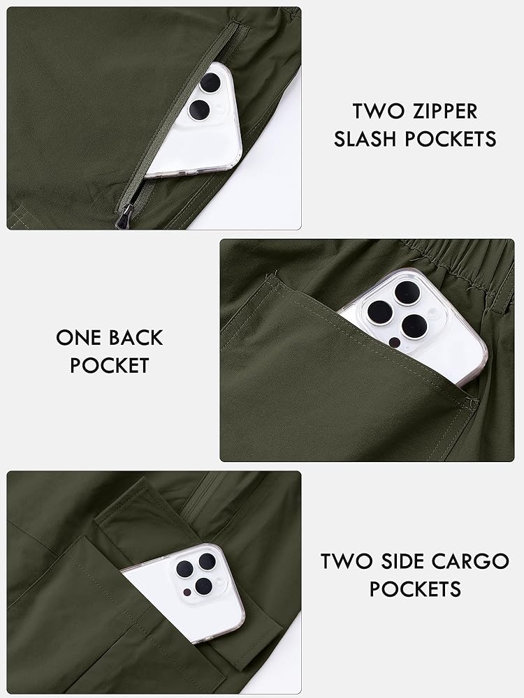 • الجيوب المتعددة: شورتات المشي لمسافات طويلة للرجال مع جيوب جانبية ، وجيوب مائلة 2 سستة حول الفخذ ، وجيب السوستة الخلفية. يضيف تصميم السوستة الأمان ويمنع العناصر من السقوط. بالإضافة إلى جيوب السوستة ، تحتوي السراويل القصيرة على عدة جيوب للتخزين الإضافي. يمكن استخدام هذه الجيوب لتخزين المحافظ والأنسجة وغيرها من العناصر الصغيرة ، وهو أمر عملي للغاية.