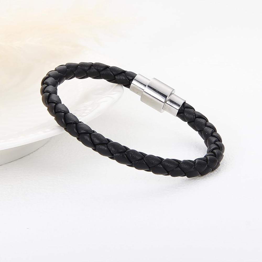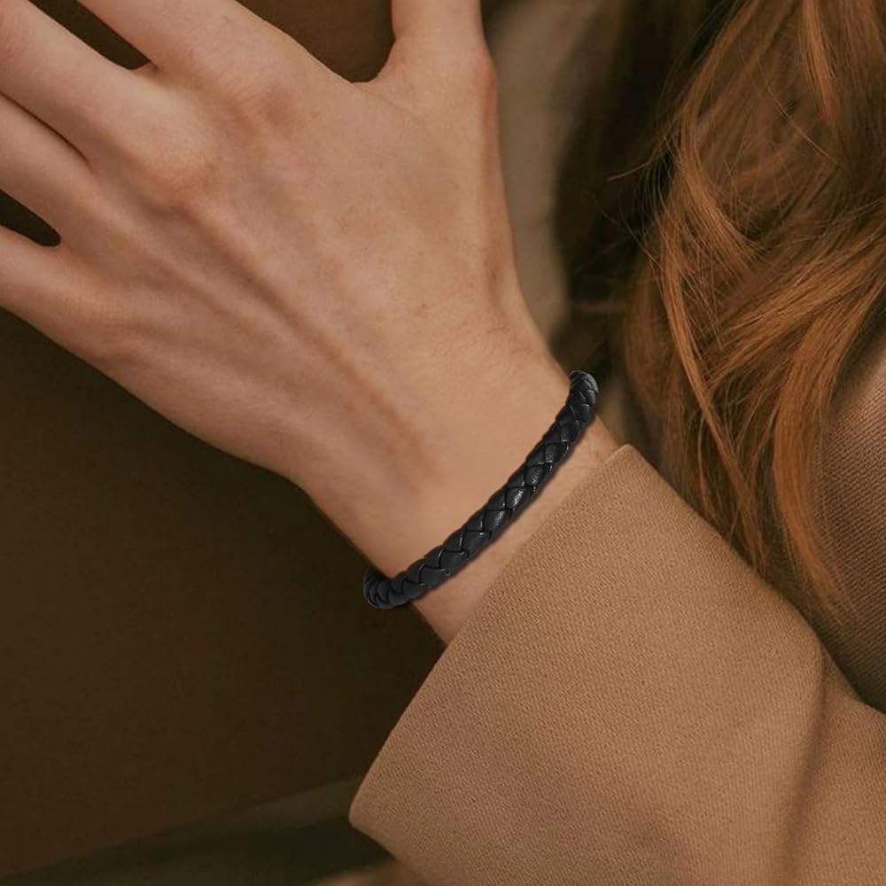 This genuine leather bracelet is designed for fashionable individuals of all genders, with a length of 8.3 inches that fits a variety of wrist sizes perfectly. Its classic and minimalist appearance makes it an excellent choice for gifting, whether for birthdays, anniversaries, or holiday celebrations—this bracelet conveys your heartfelt sentiments and care. Made from high-quality materials, it is durable and comfortable, suitable for everyday wear or special occasions, adding a unique charm to any outfit.