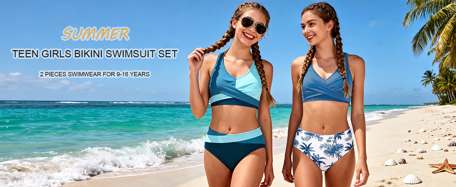 ملابس السباحة في سن المراهقة: توفر ملابس السباحة نوبة تضمن أن المراهق يمكن أن يتحرك بحرية وراحة أثناء السباحة أو اللعب على الشاطئ ، والبيكيني الأسود ، وملابس السباحة الزرقاء ، وليوم الخضراء ، وبدلة السباحة الحمراء الوردية ، وملابس السباحة الأرجواني للفتيات.