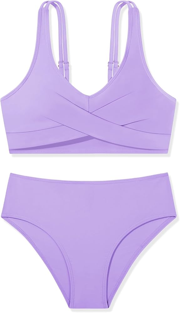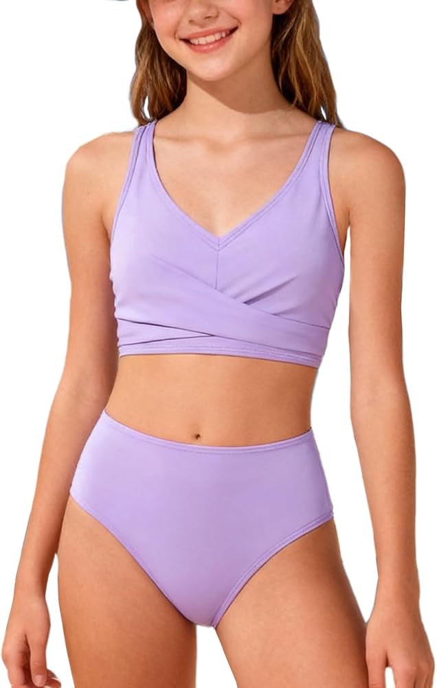 مجموعات الفتيات البيكيني: مجموعات بيكيني في سن المراهقة العصرية ، متوفرة بكل من الألوان الصلبة والمطبوعات المستوحاة من نمط هاواي الاستوائي. يضيف تصميم Twist Cross الأنيق في الصدر لمسة من الذوق إلى مظهر البيكيني الكلاسيكي ، وهو مثالي للمراهقين للأزياء.