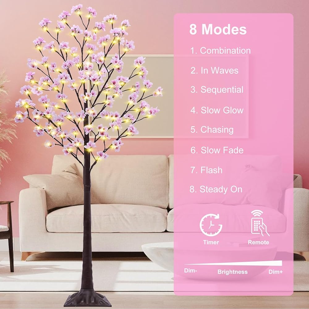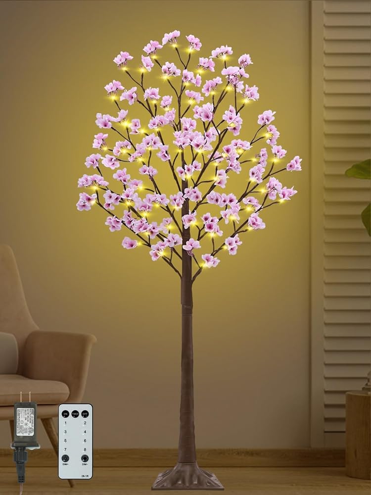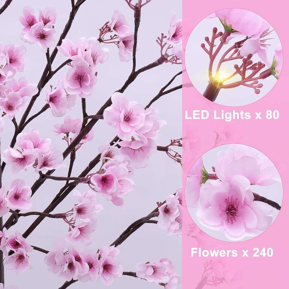 【مصنوعة يدويًا】 تم تصميم شجرة أزهار الكرز بطول 5 أقدام بدقة باليد. في 10 مجموعات من الفروع البنية ، 240 أزهار الكرز الوردي الدقيق والكامل في إزهار كامل. إنه مزود بـ 80 مصابيح LED و WHITE (يتم إخفاء الأسلاك في الفروع لإلقاء نظرة أكثر جمالية). في كل من الأوضاع الثابتة - على وميض ، فإنه يخلق جوًا من الحيوية الطبيعية والرومانسية في منزلك.