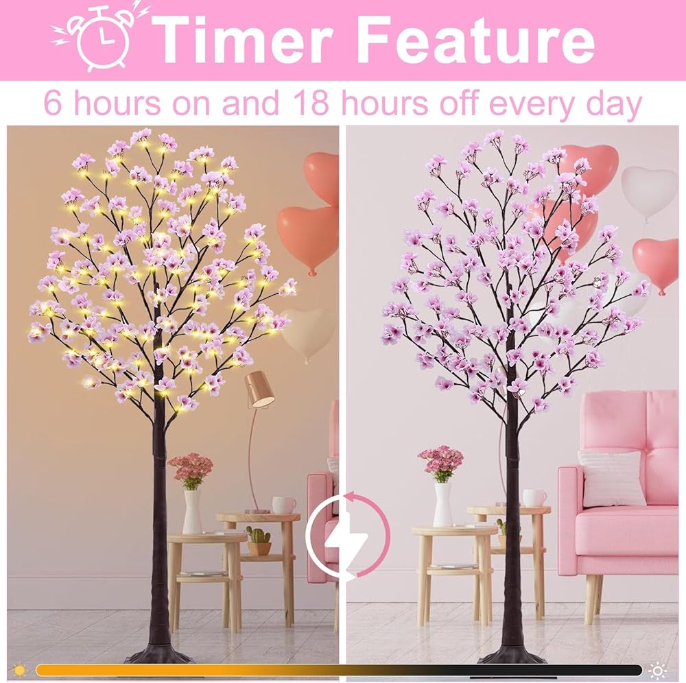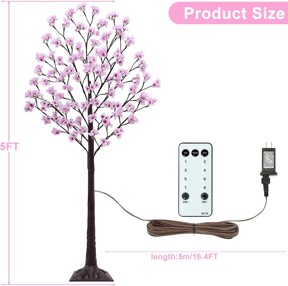 5 أقدام من شجرة أزهار الكرز المضاءة - فوك مصطنعة مصطنعة فوق الشجرة الوردية مع 80 أضواء ، 240 زهور الخصبة ، مؤقت ، عن بعد 8 أوضاع شجرة زهر الكرز لحفل الزفاف الربيعي عيد الحب الداخلي في الهواء الطلق