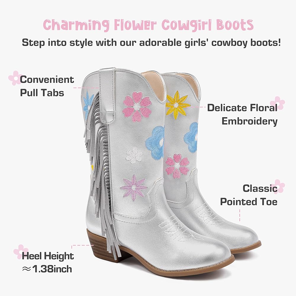 تنوعا للعديد من المناسبات: إقران هؤلاء الفتيات ركوب الأحذية مع الجينز أو قمصان رعاة البقر أو الفساتين لمجموعة متنوعة من المظهر. الفتيات الغربيات مناسبة لحفلات عيد الميلاد ، والزفاف ، وركوب الخيل ، والمغامرات اليومية ، وأكثر من ذلك!