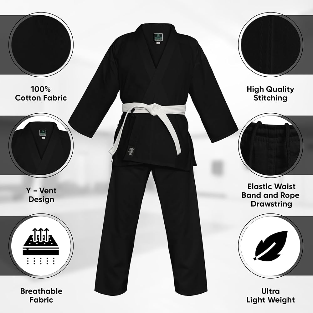 زي الكاراتيه للأطفال والكبار طالب خفيف الوزن كاراتيه GI للفنون القتالية الزي الأسود مع حزام