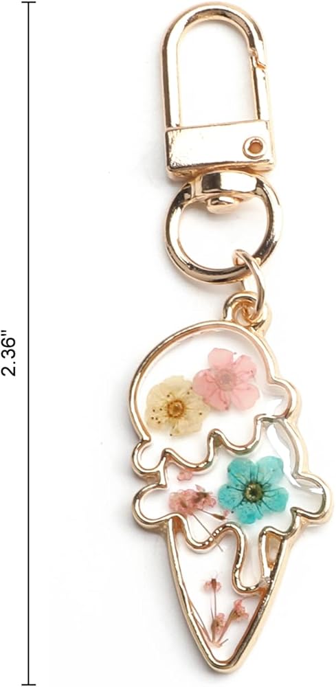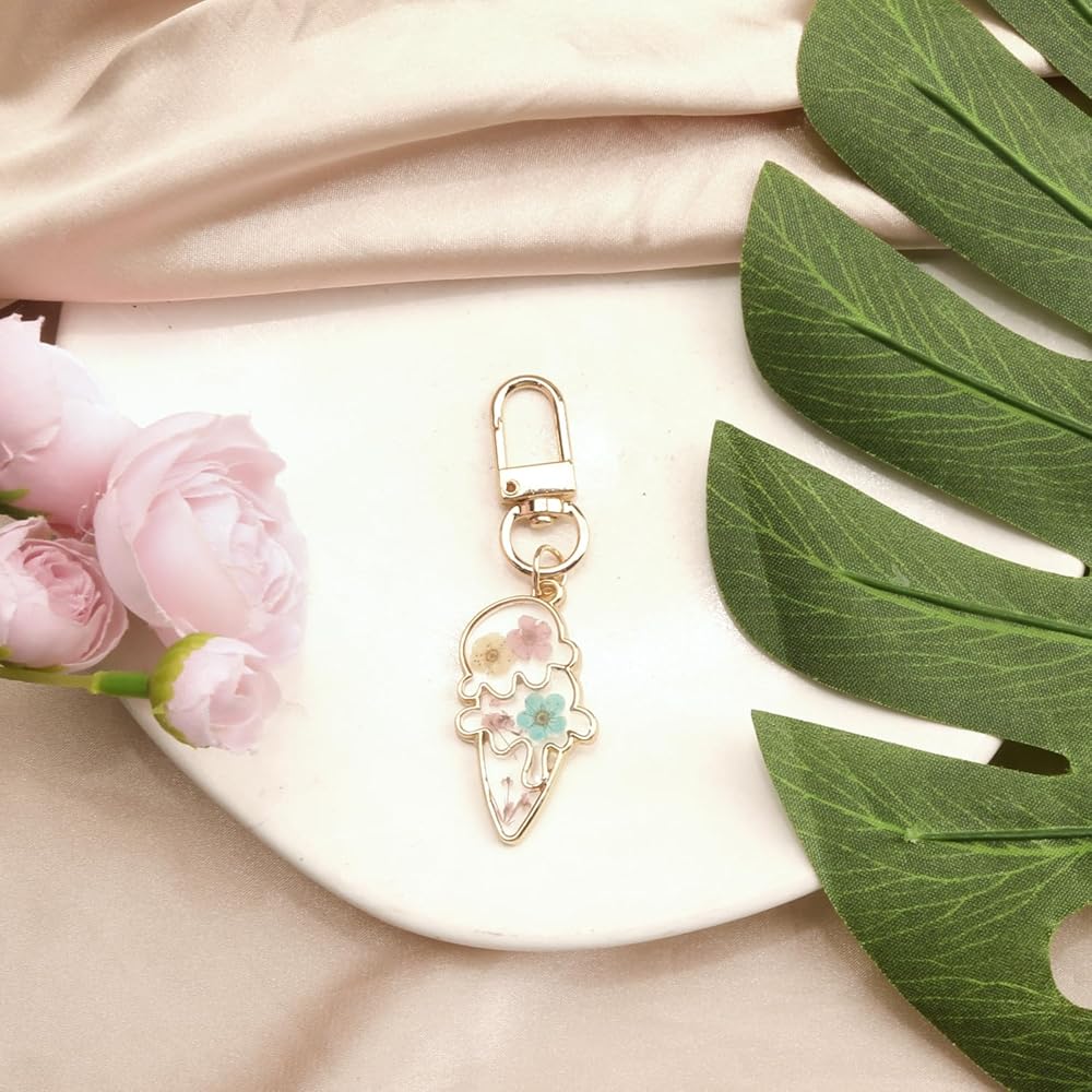 Handmade with Real Dried Flowers: Each icecream keychain is crafted with real pressed flowers, carefully preserved to showcase their delicate and natural charm.