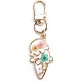 Creative Ice Cream Design: This pressed flower keychain features a charming ice cream-shaped resin casing, blending artistry with natural beauty for a delightful accessory.