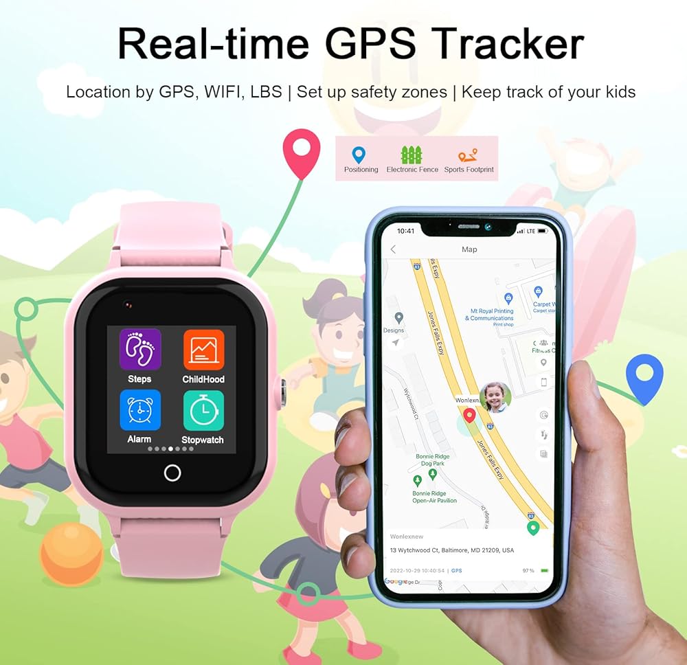 Wonlex Kids Smart Watch مع GPS Tracker و Calling ، 4G Smartwatches Girls Boys with Sim Card SOS Camera Video Mode Mode للأطفال للأطفال الذين تتراوح أعمارهم بين 4-12 من هدايا عيد الميلاد (الوردي)