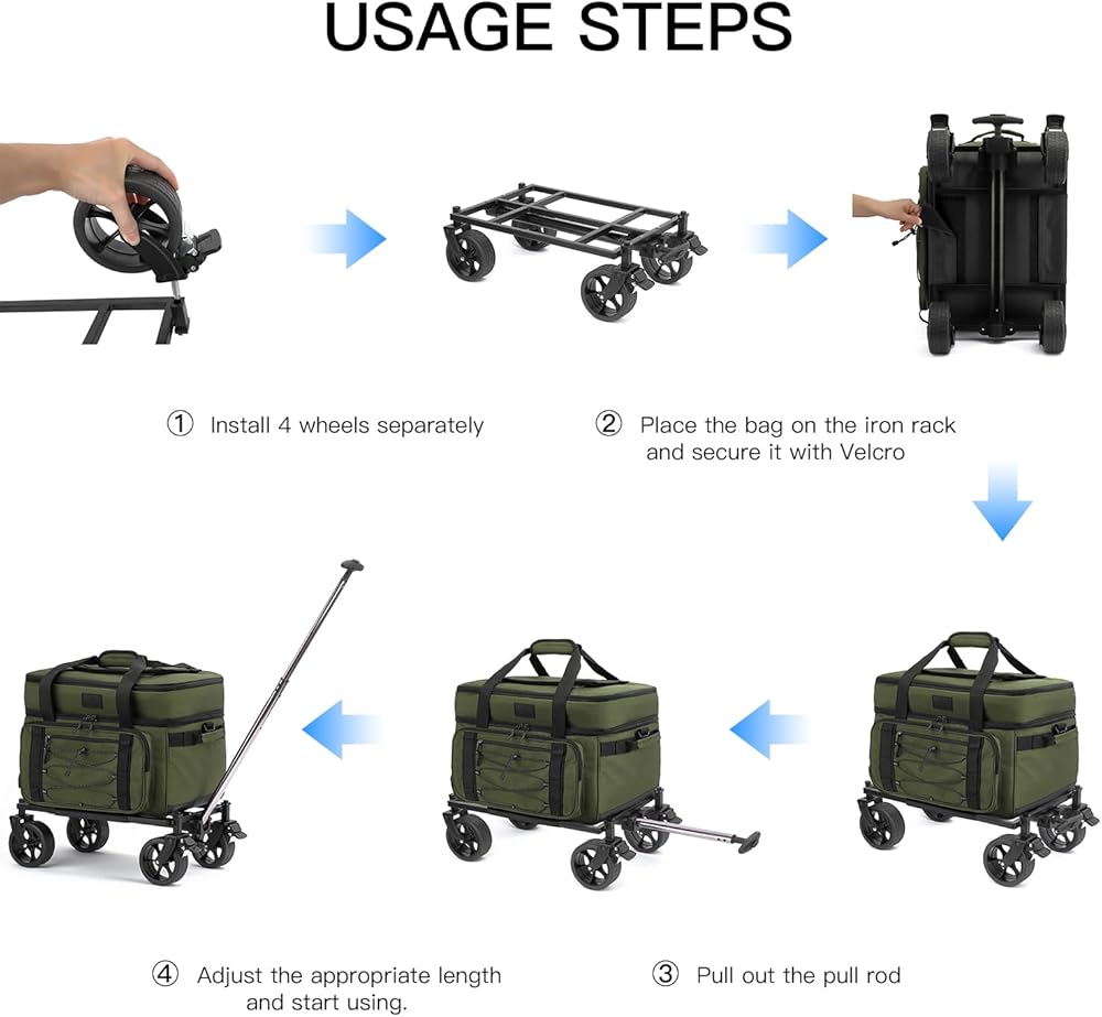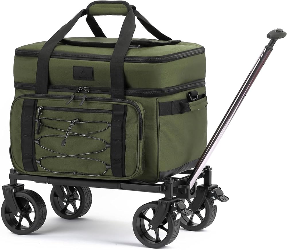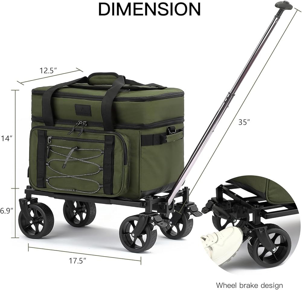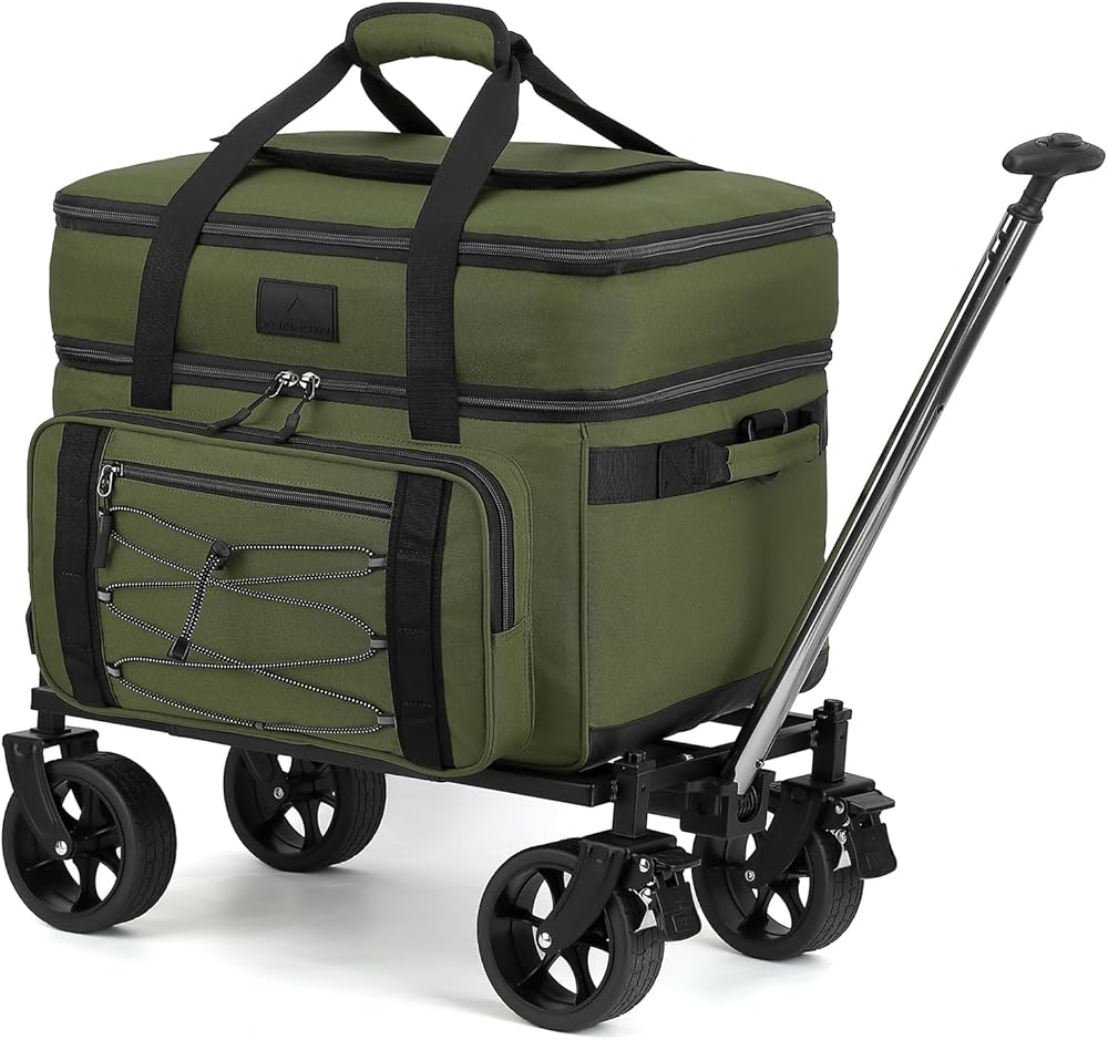 【All-Terrain Mobility with Detachable Oversize Wheels】: 4 detachable big rugged wheels + telescoping handle conquer sand/grass/gravel. Detach wheels for compact storage.