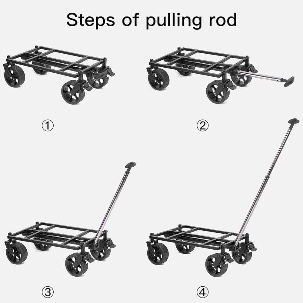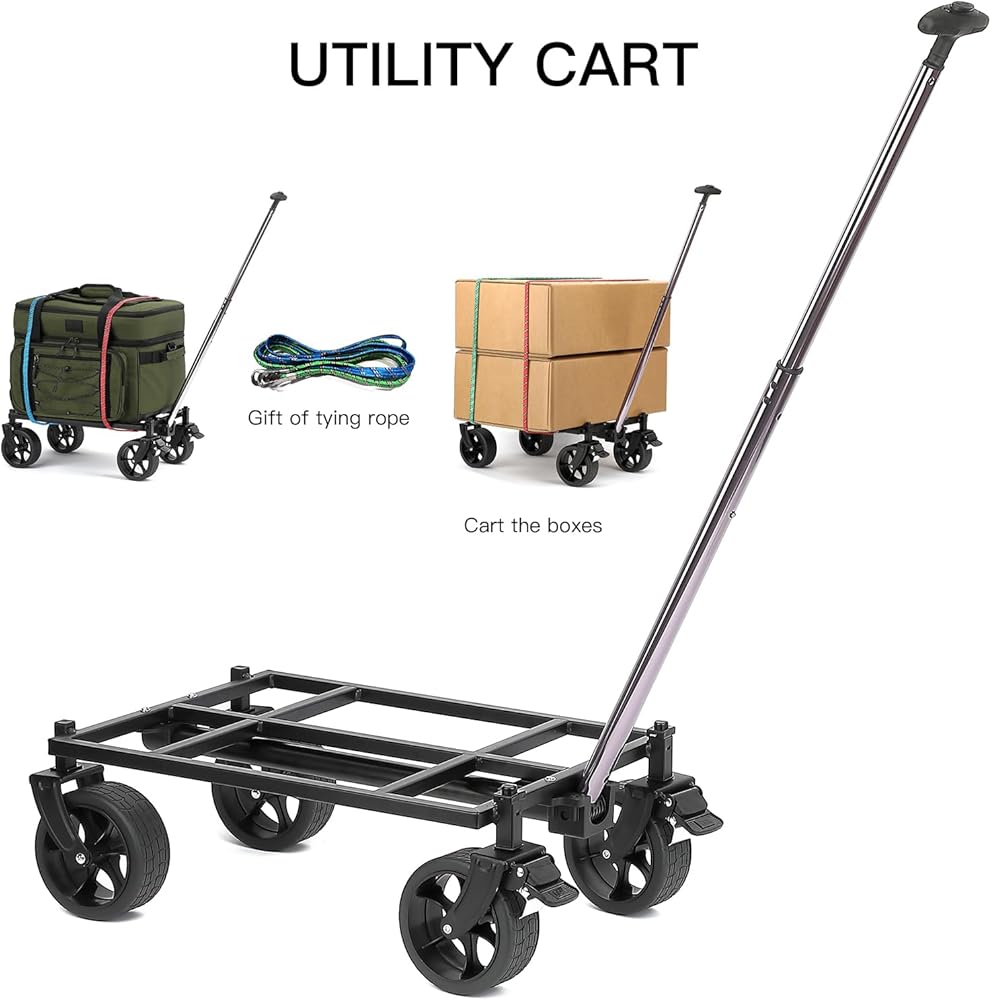 【Premium Durability】: The telescoping handle is made of aluminum alloy material, which is sturdy and durable. The base frame is made of metal square tubes and can support up to 100 pounds. The wheels are made of brand new materials, the two front wheels can rotate 360 degrees and with brakes.