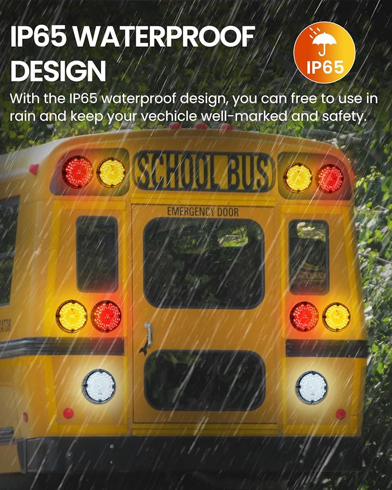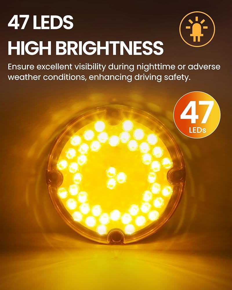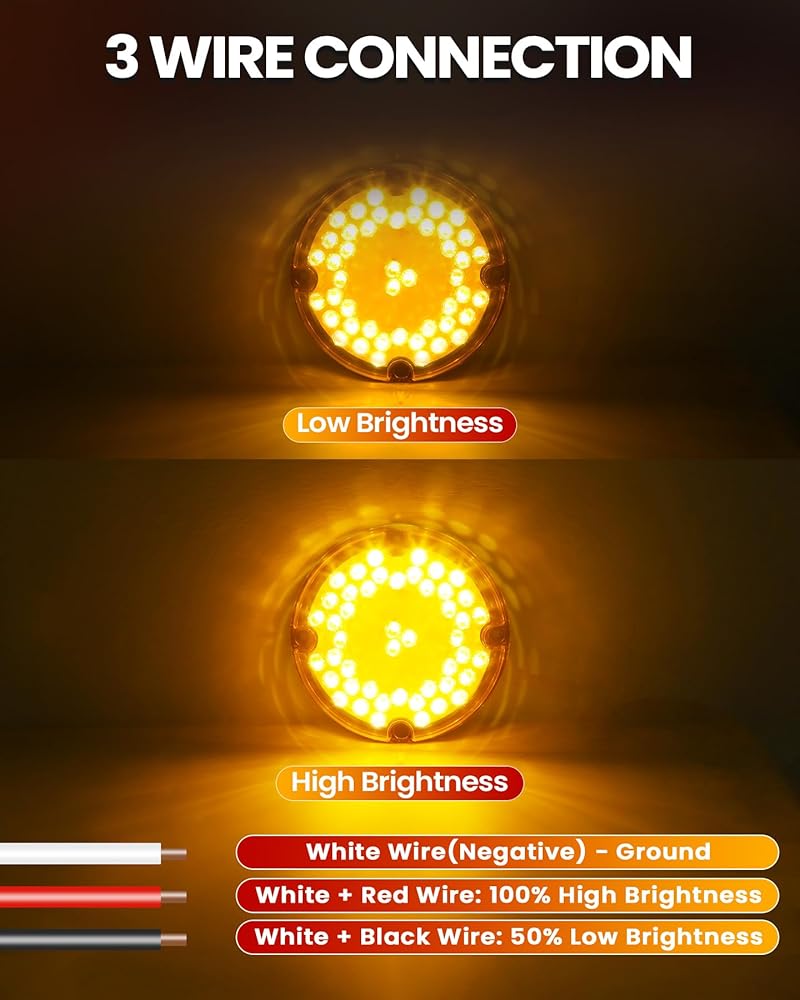 مصابيح الذيل LED عالية الأداء: تتضمن هذه المجموعة مصابيح LED مستديرة بحجم 7 بوصات مع 3 خيارات ألوان: العنبر والأحمر والأبيض ، والتي تتميز 47 مصابيح LED عالية الكثافة للرؤية المتفوقة والسلامة على الطرق المحسنة. تعمل العدسة العاكس المدمجة على تحسين توزيع الضوء ، مما يضمن إخراج إشارة واضحة ومشرقة.