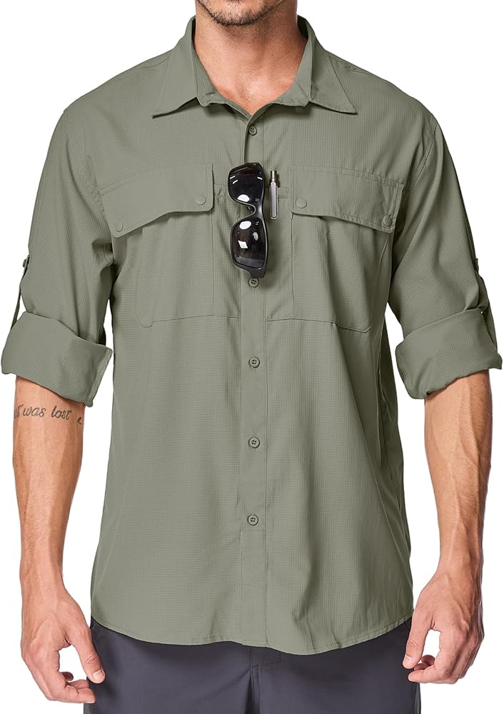 قمصان المشي لمسافات طويلة بالرجال: سطح النسيج مقاوم للماء ومقاوم للبقع ، يمكن للقمصان الطويلة للأكمام الطويلة للرجال أن تبقيك جافة ونظيفة للأنشطة في الهواء الطلق. وسهلة الصيانة ، قابلة للغسل الماكينة وخالية من التجاعيد.