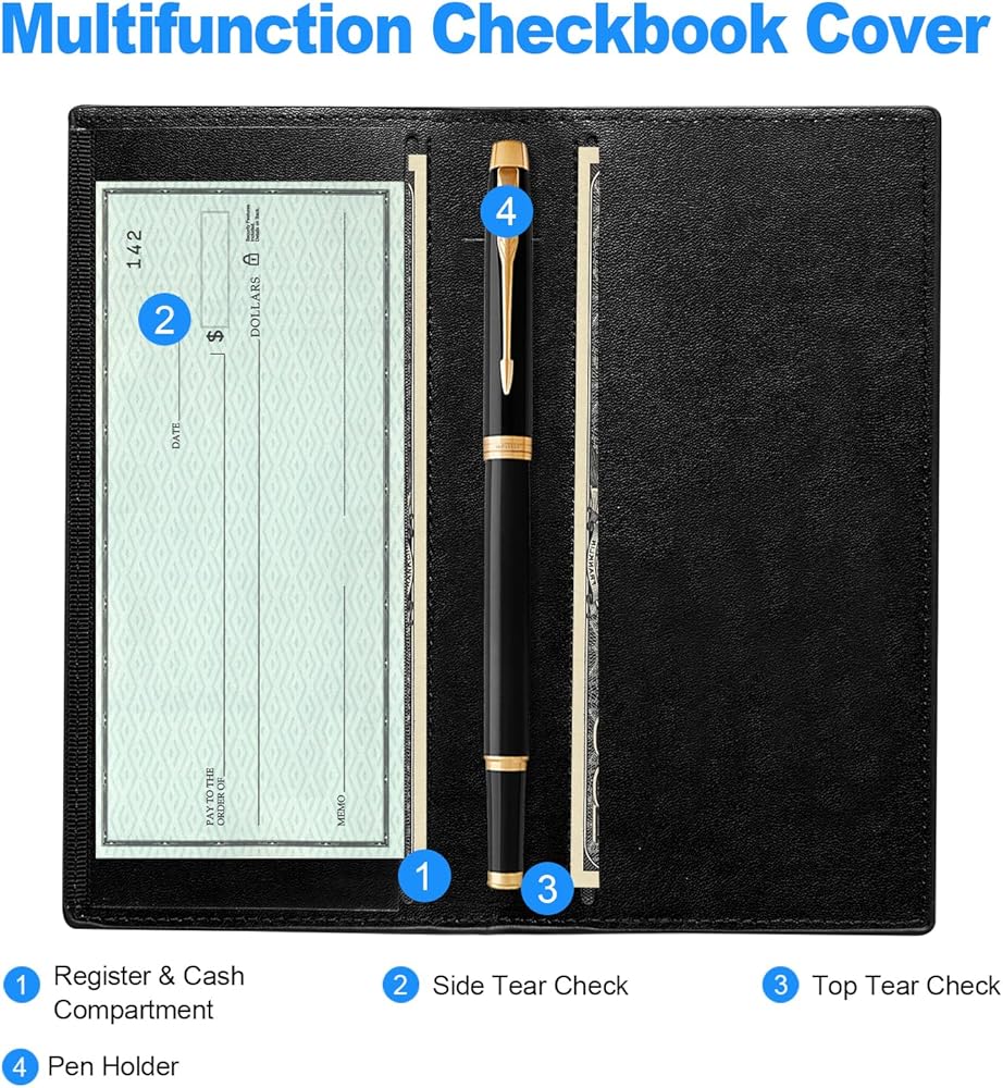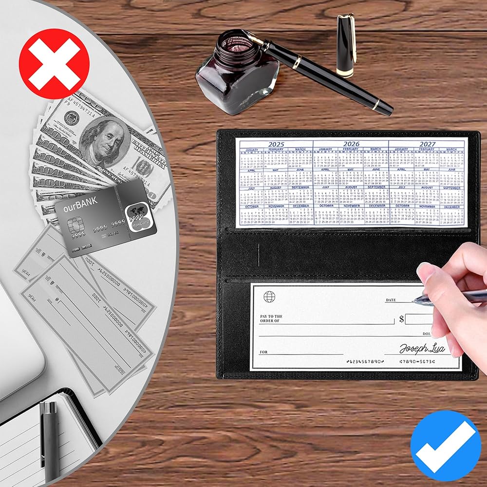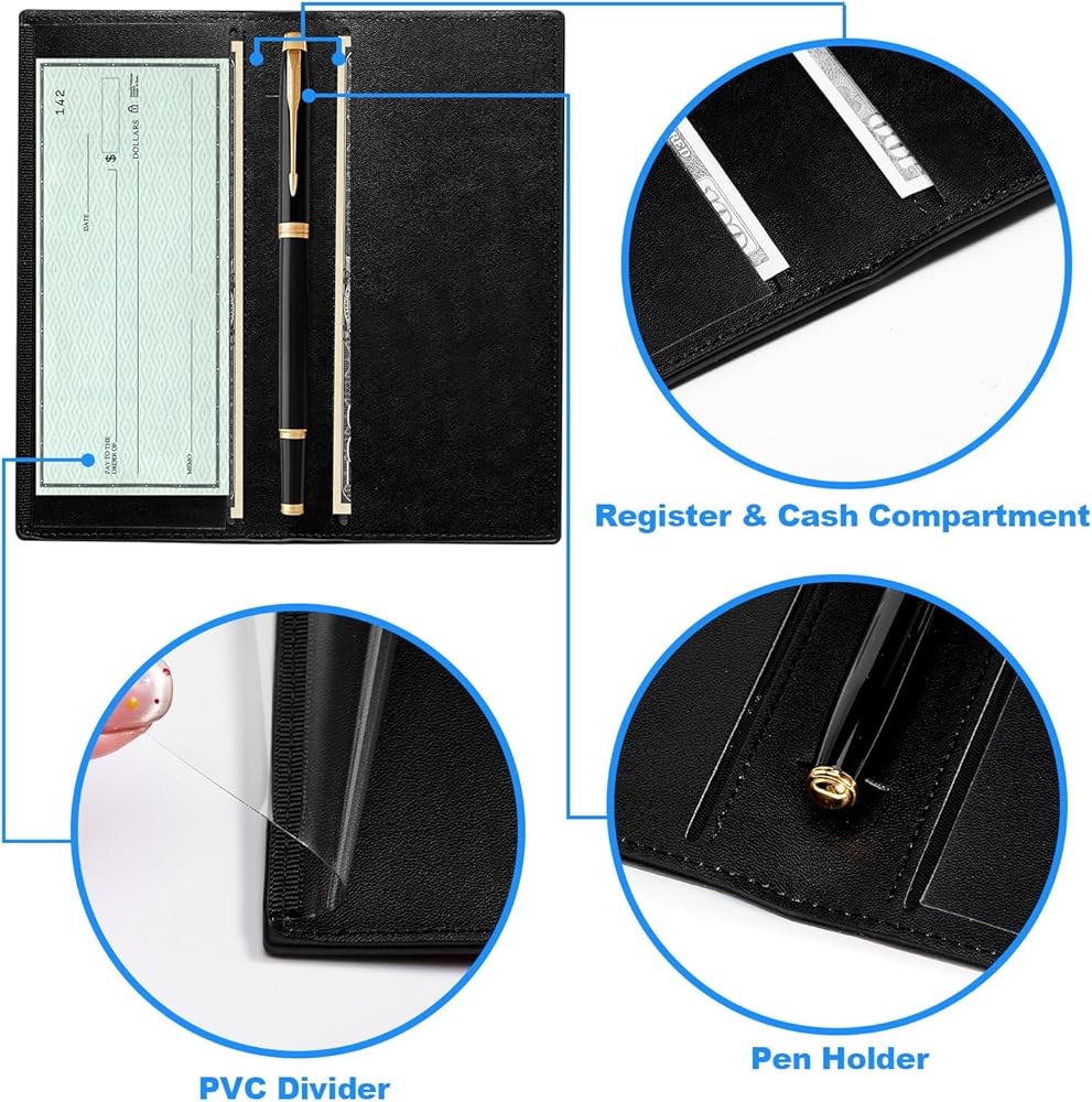 فتحات وظيفية: يتميز محفظة دفتر شيكات مصممة بعناية مقصورات وافرة للشيكات والسجلات والفواتير. بالإضافة إلى ذلك ، يتضمن أقسام متعددة لتلبية احتياجاتك اليومية