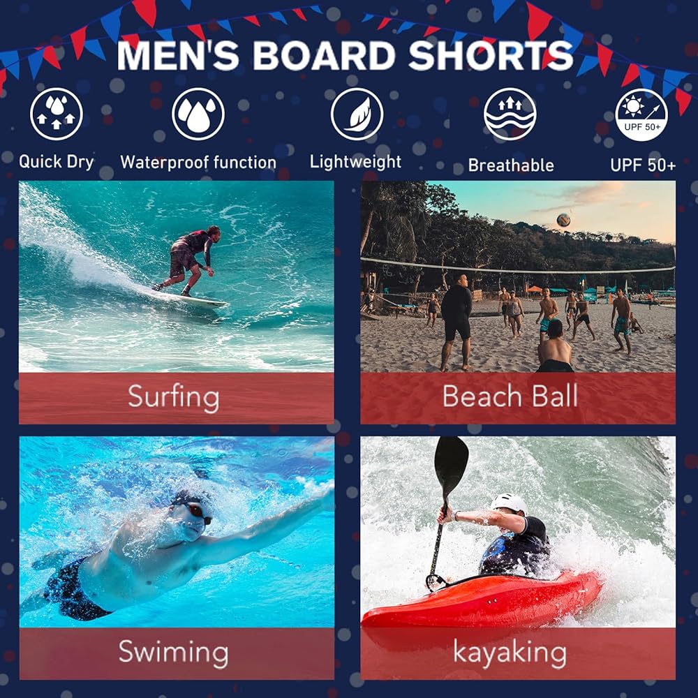 - تصميم 2 في 1: جذع السباحة للرجال مع نمط العلم الأمريكي ، والوزن الخفيف والتجفيف السريع ، ويقدم مظهرًا أنيقًا ووطنيًا