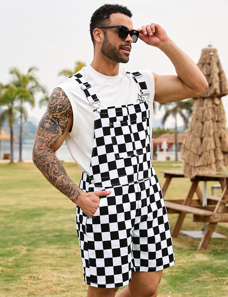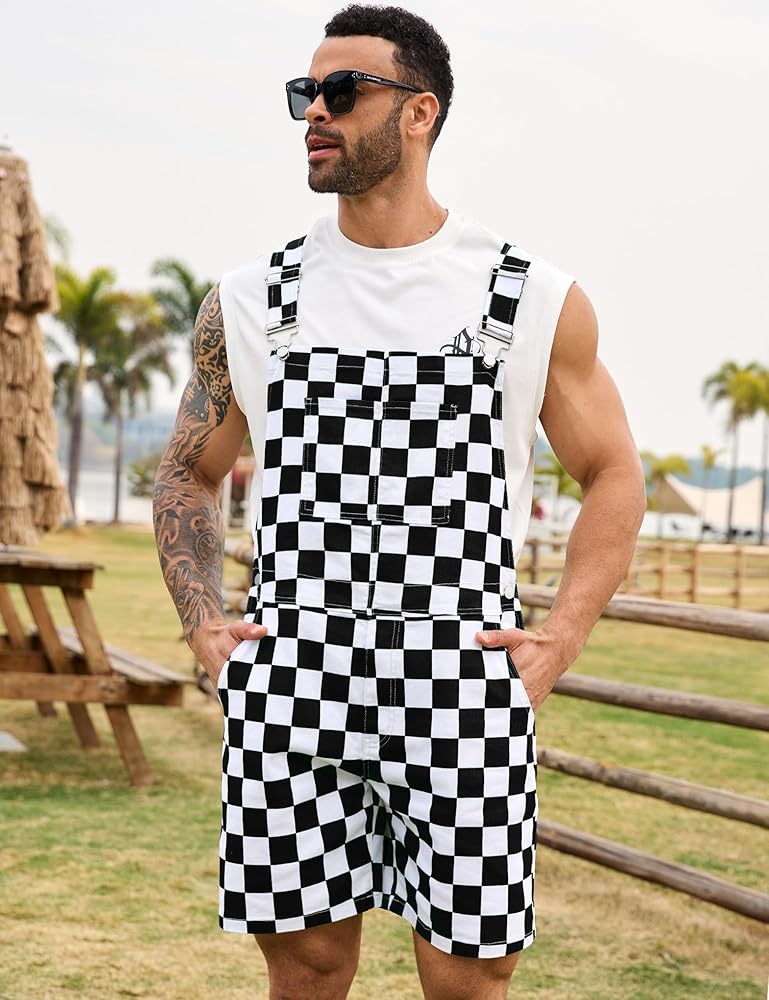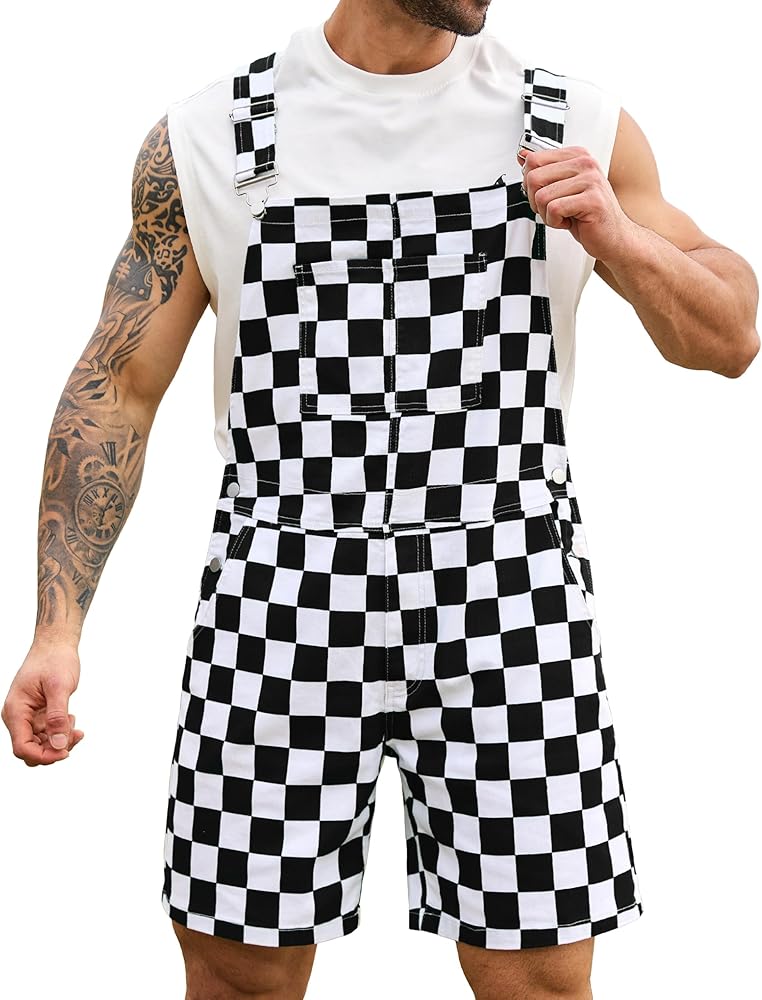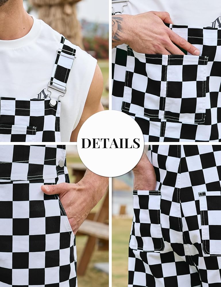 【النسيج القصيرة الشوراء الشوراء】 مصنوعة من الزرة المتقلب الأبيض الأسود من نسيج الدنيم الناعم والمريح ، فإن وزرة المريلة المتقاطعة متينة. يتيح لك السراويل القصيرة الإجمالية للرجال أن يمتد وتوسيع من الأزواج بشكل جيد للحفاظ على أنك رائع في كل مرة في الصيف الساخن.