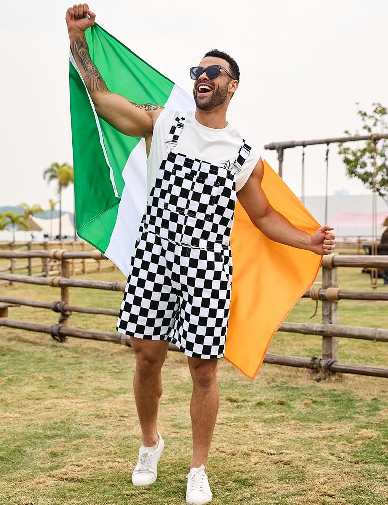 【مصممة مصممة لزيارة Men Design لتصميم الرجال】 وزرة رجال بالأبيض والأسود من الأعلام المتقلب يوم السباق - رائع للمهرجانات الصاخبة وأيام اللعبة! سيجعلك الرجال المتقلبون الجريء أن تبدو واثقًا أثناء الهتاف على المتسابقين المفضلين لديك. ويقوم الرجال القصيرون بملابس عطلة رائعة لعيد الميلاد وعيد الهالوين ، وأيضًا ملابس مضحكة للتغلب على الحرارة في يوم الصيف.