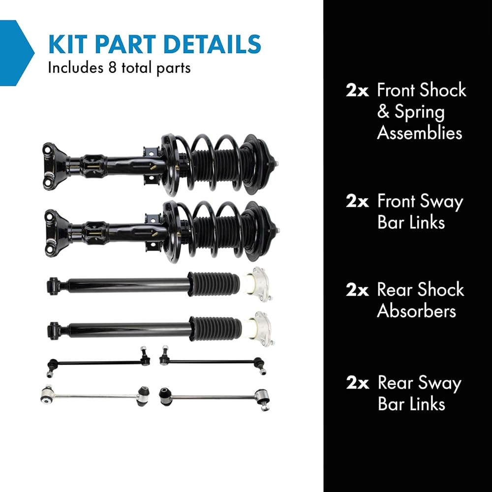 TRQ suspension kits are manufactured using premium raw materials and coatings for extended service life. Each TRQ suspension component is designed to be a direct, maintenance-free replacement to the stock unit. To extend the life of your steering and suspension components, TRQ recommends replacing components in pairs, sets, or kits. All products are fit and road-tested in our Massachusetts R&D facility to ensure we deliver on our promise of Trusted Reliable Quality.