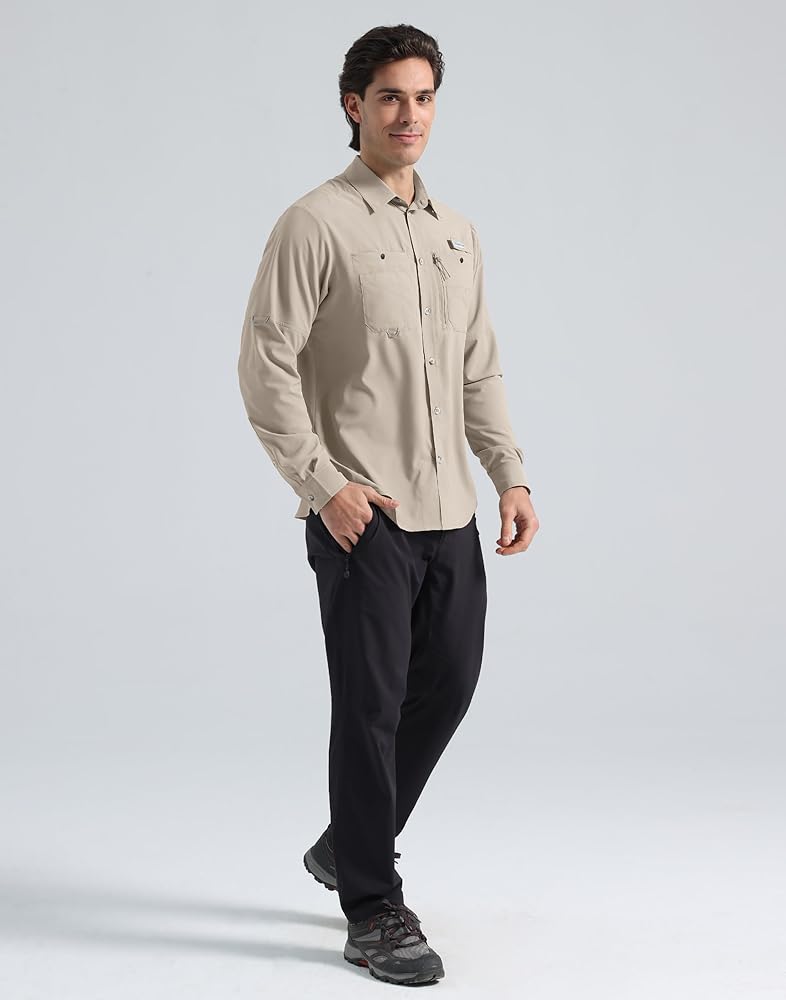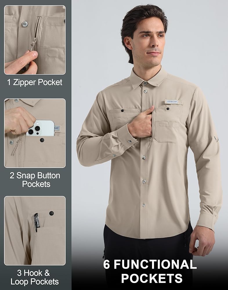 6 جيوب وظيفية: تأتي قمصان الحماية من أشعة الشمس الطويلة للرجال مع 6 جيوب عملية: 1 جيب سحاب لتخزين هاتفك وأشياء ثمينة بشكل آمن أثناء الصيد النشط ، وجيوب 2 من السفن ، و 3 جيوب ربط وحلقة للوصول السريع إلى معدات الصيد والملحقات الصغيرة.