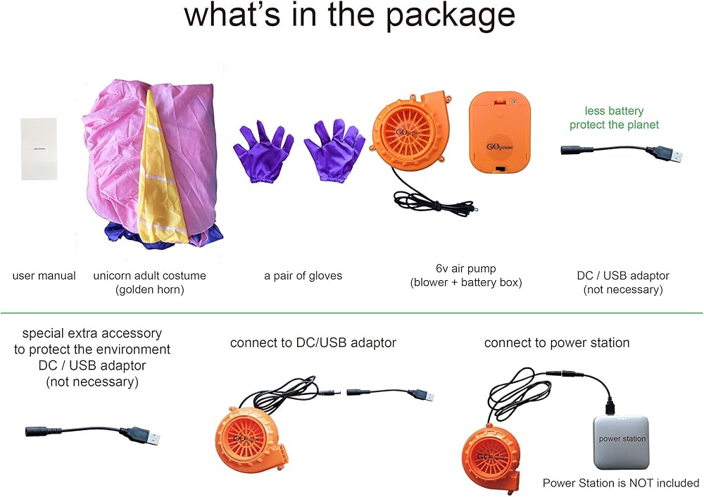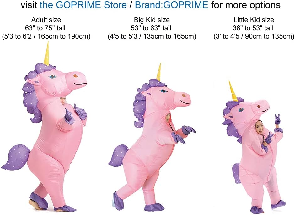 INSTANT INFLATION and JUST POINT-AND-PUMP BLOWER: Fast inflating unicorn costume. 1 minute to become a unicorn. No need to set up the included blower. Simple operation and user-friendly.