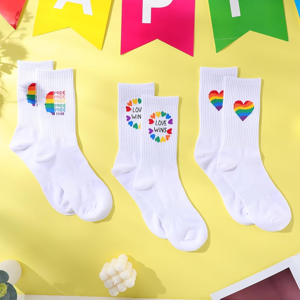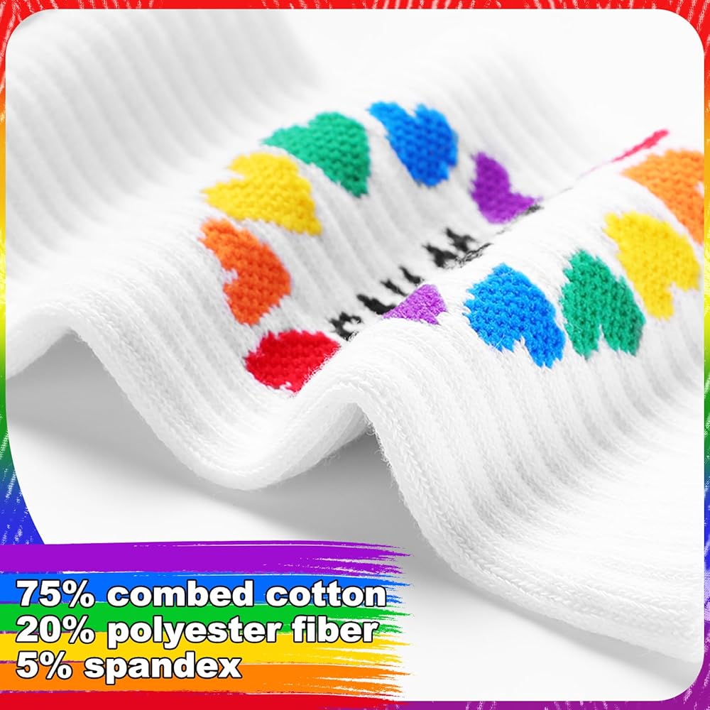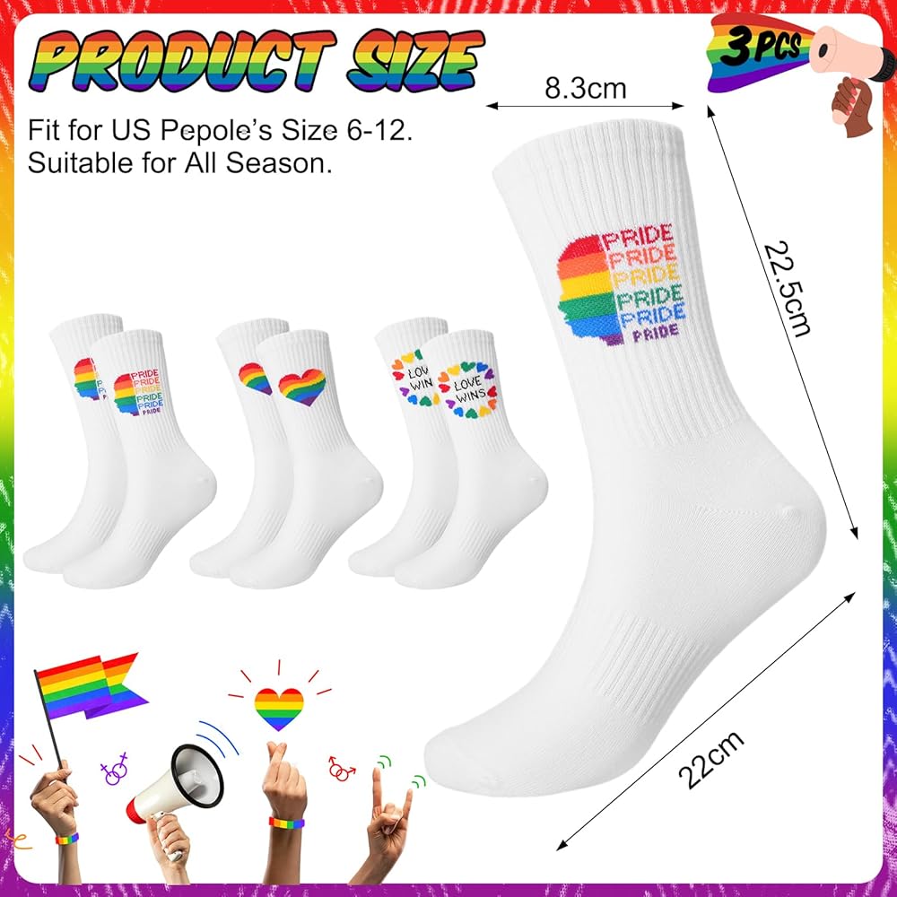 • Package Included: set of 3 pride crew socks for nice style and comfort; Celebrate diversity with our stylish set of 3 rainbow crew socks; These socks are not only a style statement but also an expression of individuality and unity