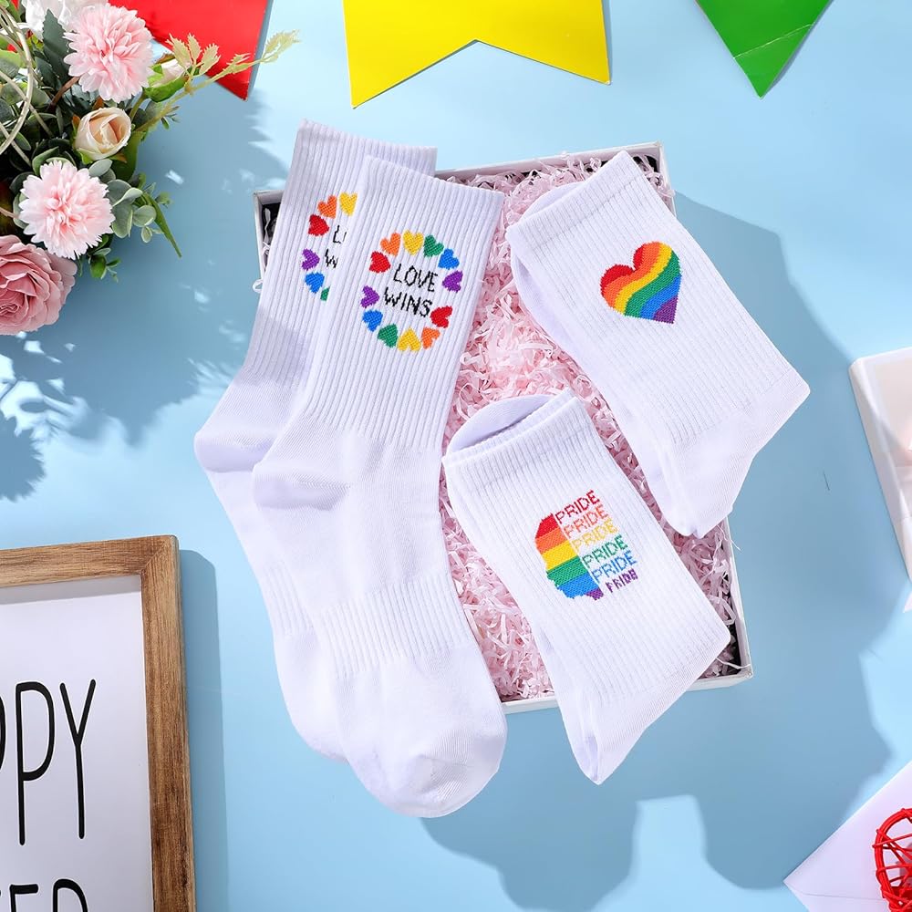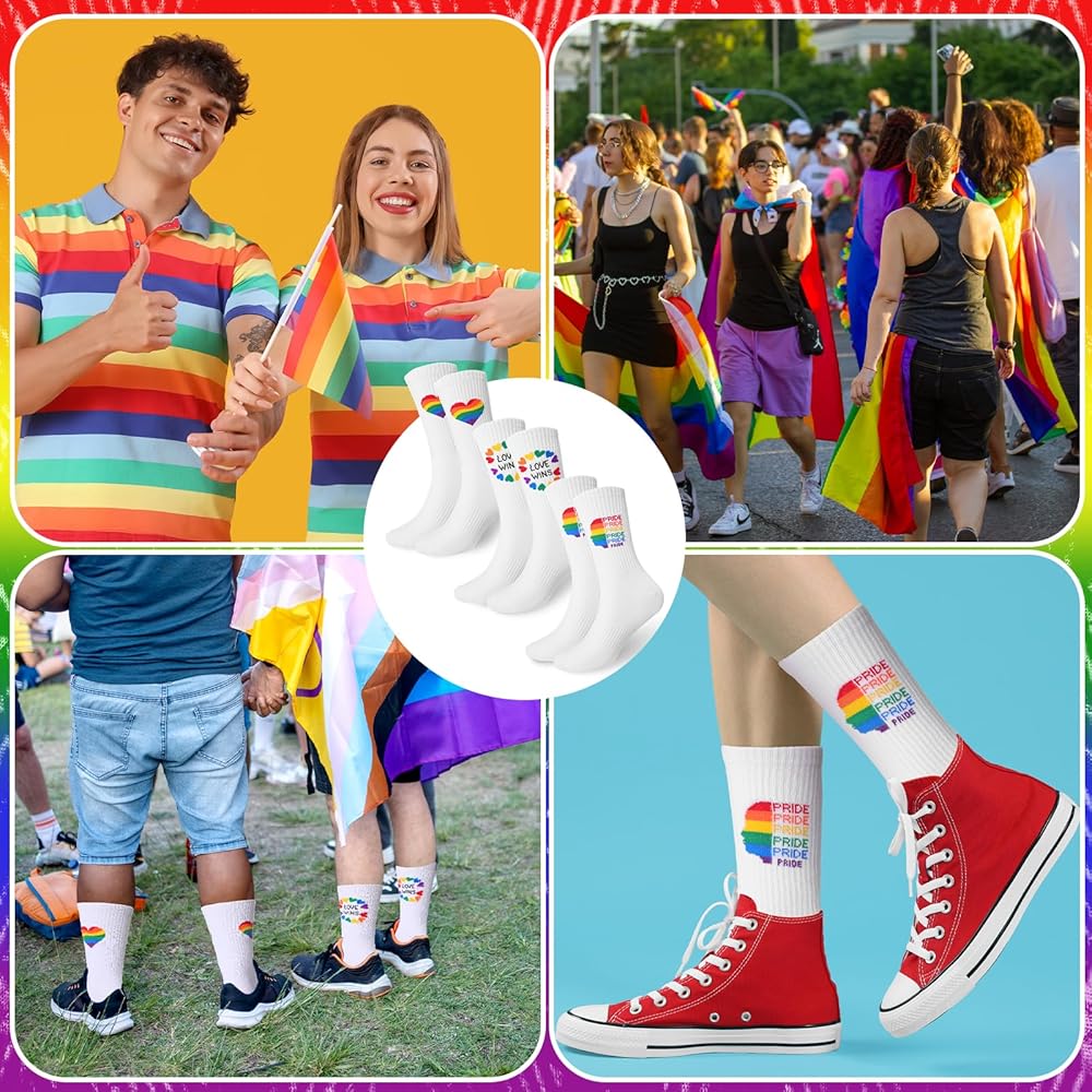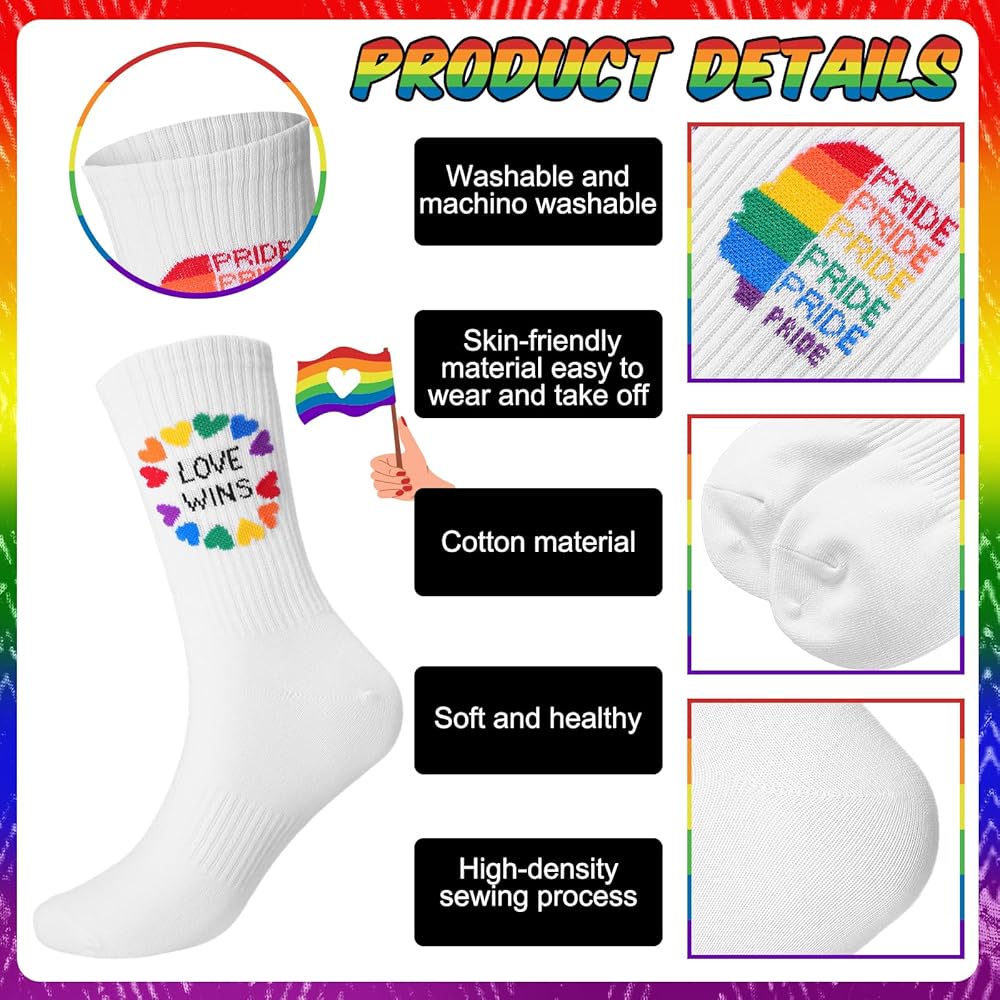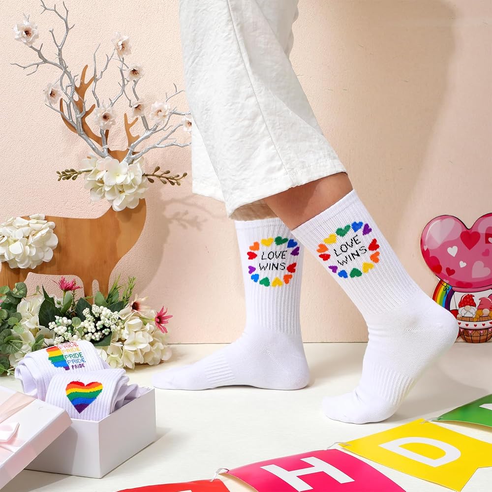 • Package Included: set of 3 pride crew socks for nice style and comfort; Celebrate diversity with our stylish set of 3 rainbow crew socks; These socks are not only a style statement but also an expression of individuality and unity