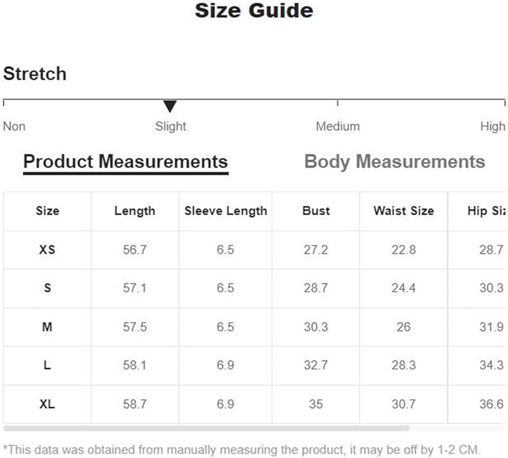 Small: Length: 57.1", Sleeve Length: 6.5", Bust: 28.7", Waist Size: 24.4", Hip Size: 30.3", Cuff: 10.6"